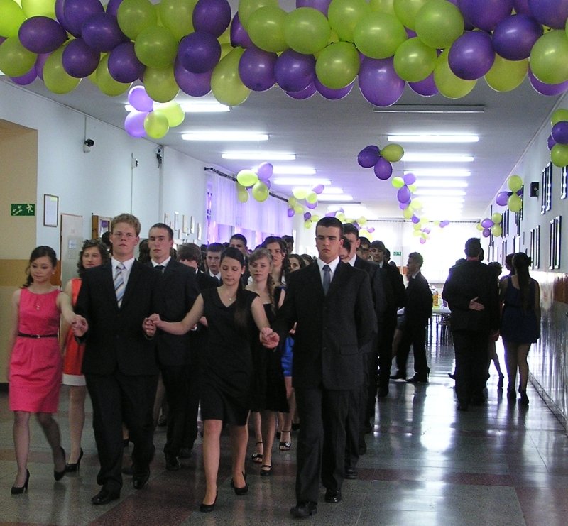 Zgodnie z coroczną tradycją, najstarsi gimnazjaliści spotkali się na zabawie podsumowującej trzy lata, jakie spędzili wspólnie w gimnazjum w Zespole Szkół im. Polskich Noblistów w Wielichowie. Tym razem, impreza zaplanowana została na piątek, 15 czerwca. Po oficjalnym powitaniu, trzecioklasiści stanęli do wspólnego poloneza, do odtańczenia którego przygotowywali się pod okiem p. Aliny Gidaszewskiej. Z wielką uwagą przyglądali im się zebrani na sali wychowawcy, nauczyciele, a także przedstawiciele rodziców. Dziewczęta, dzięki starannie dobranym kreacjom, świetnie prezentowały się na parkiecie, chłopcy zaś stali przy nich w swoich garniturach - wypróbowanych w trakcie testów gimnazjalnych Smile - niczym prawdziwi dżentelmeni...