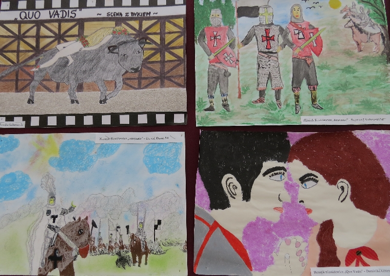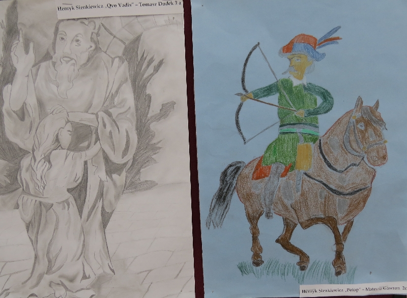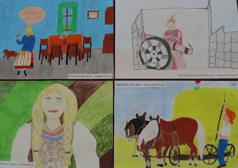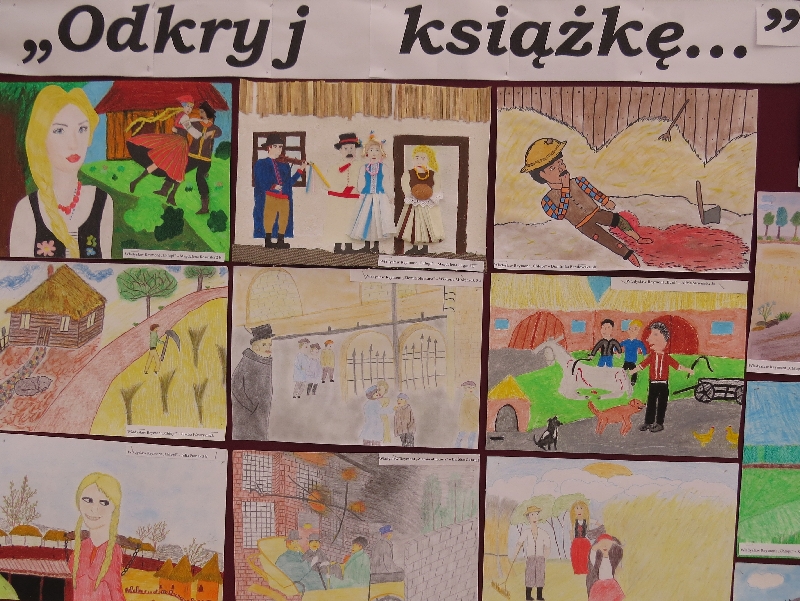 2. Gminny konkurs na najlepszą pracę plastyczną pt. ,,Odkryj książkę” wylosowaną z ,,Kapelusza tytułów.” W konkursie brali udział uczniowie klas II i III gimnazjum. Uczniowie nagrodzeni: Magdalena Rosolska II b Klaudia Lehman II c Aleksandra Ruta III a Tomasz Dudek III a