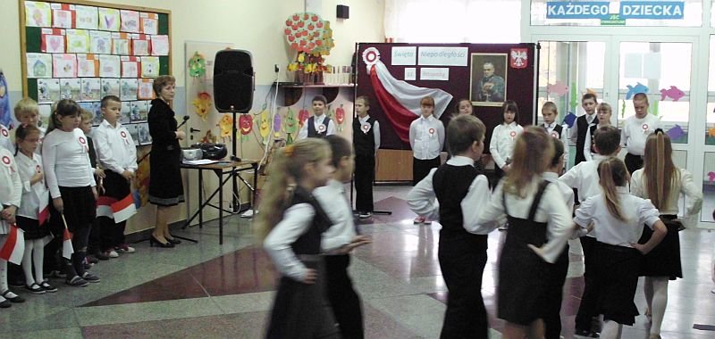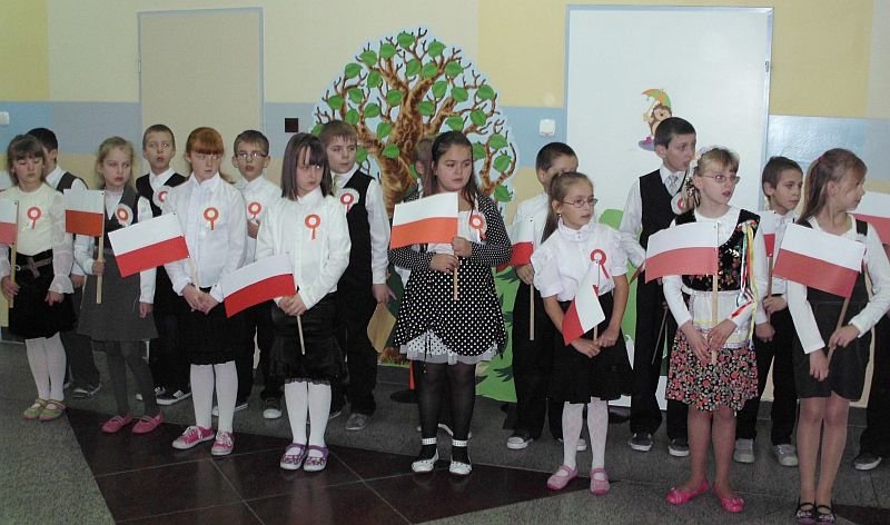 W czwartek, 10 listopada br. z okazji Święta Niepodległości odbył się uroczysty apel przygotowany przez uczniów klas trzecich szkoły podstawowej pod kierunkiem wychowawczyń: p. Z. Kucharczyk i p. A. Błażejczak. Dzieci wierszem, tańcem i piosenką uczciły tę jedną z najważniejszych dla Polaków uroczystości. Z tej okazji przygotowały też chorągiewki prezentujące polską flagę oraz świąteczne kotyliony.