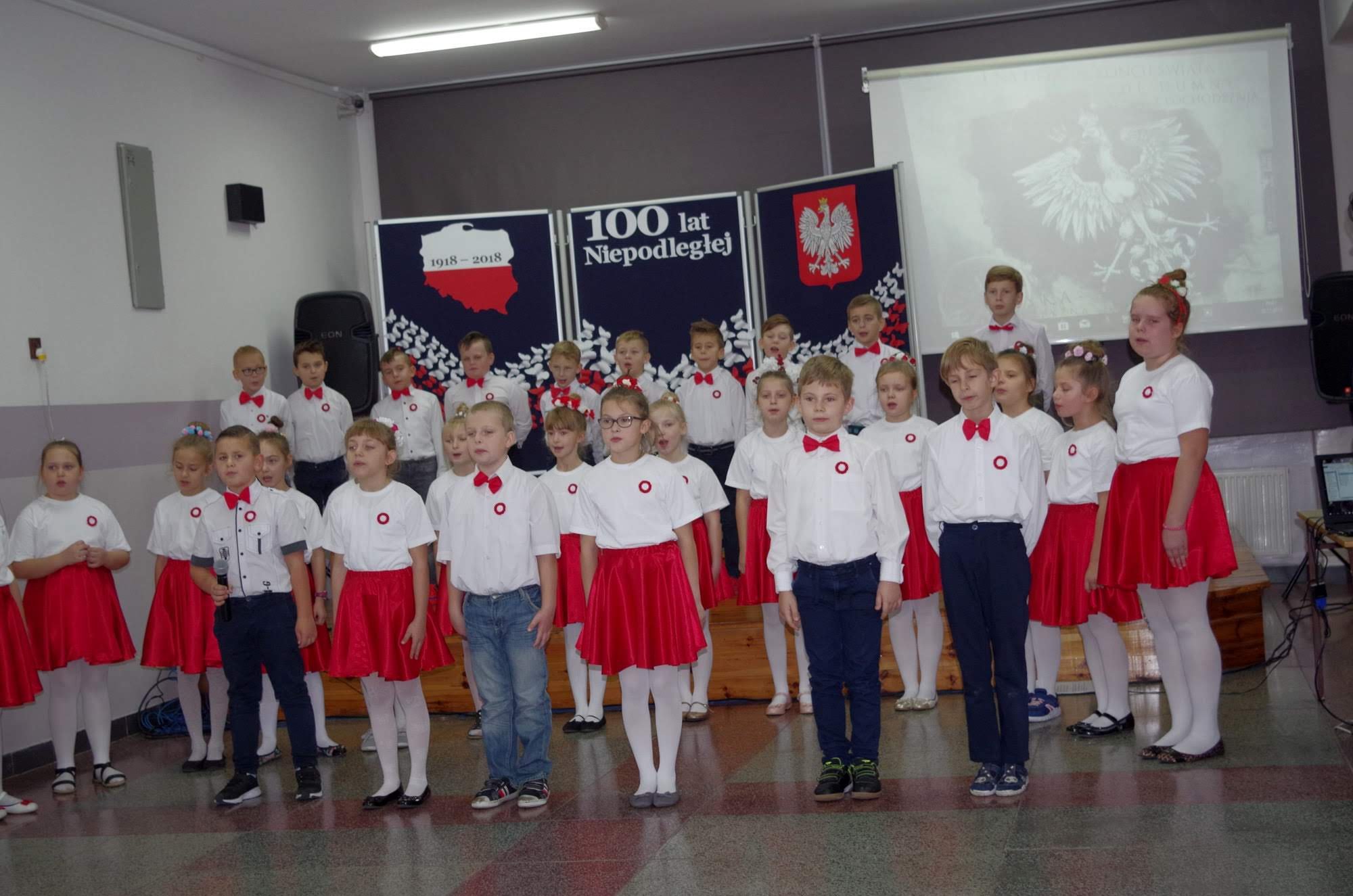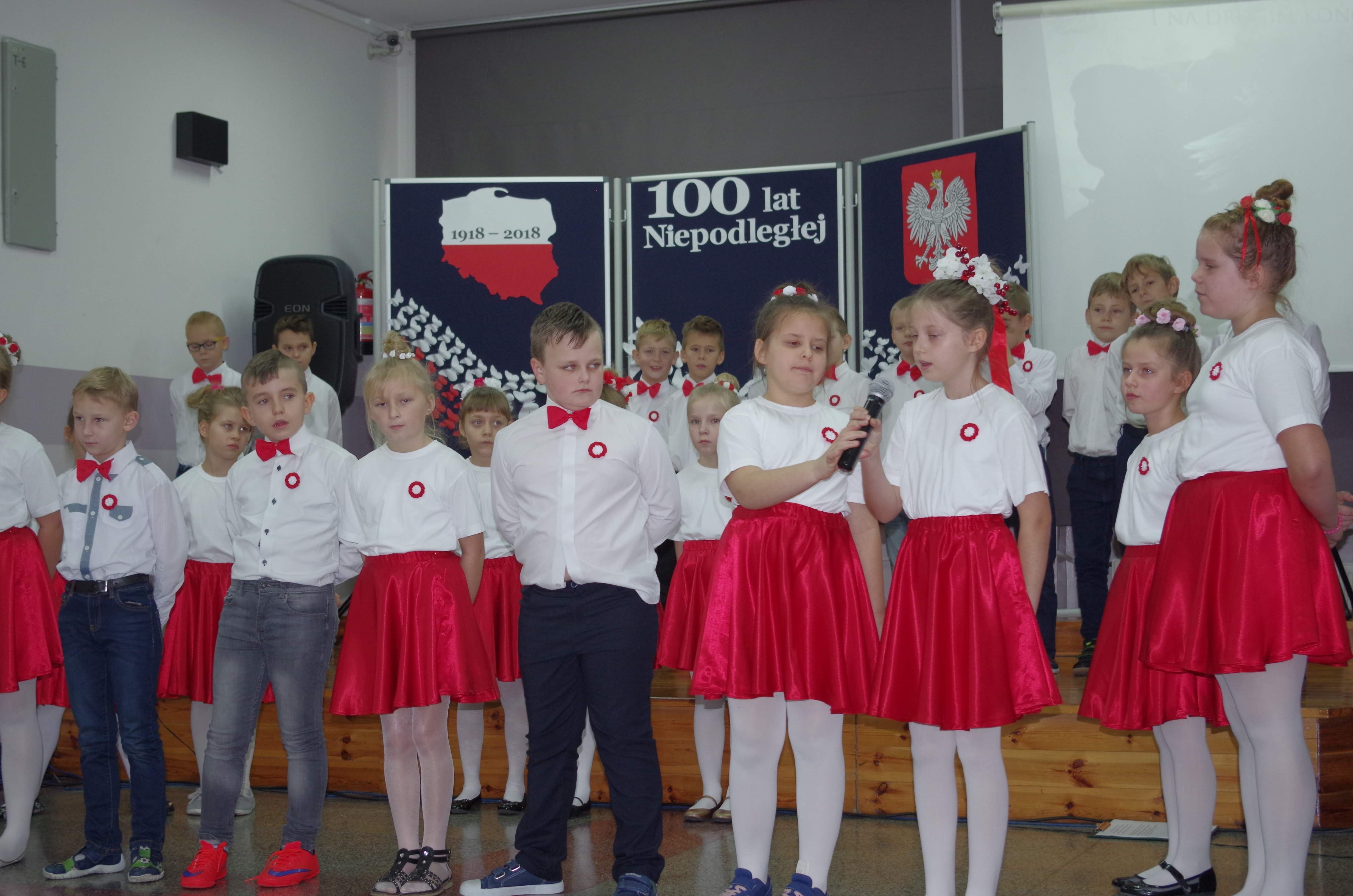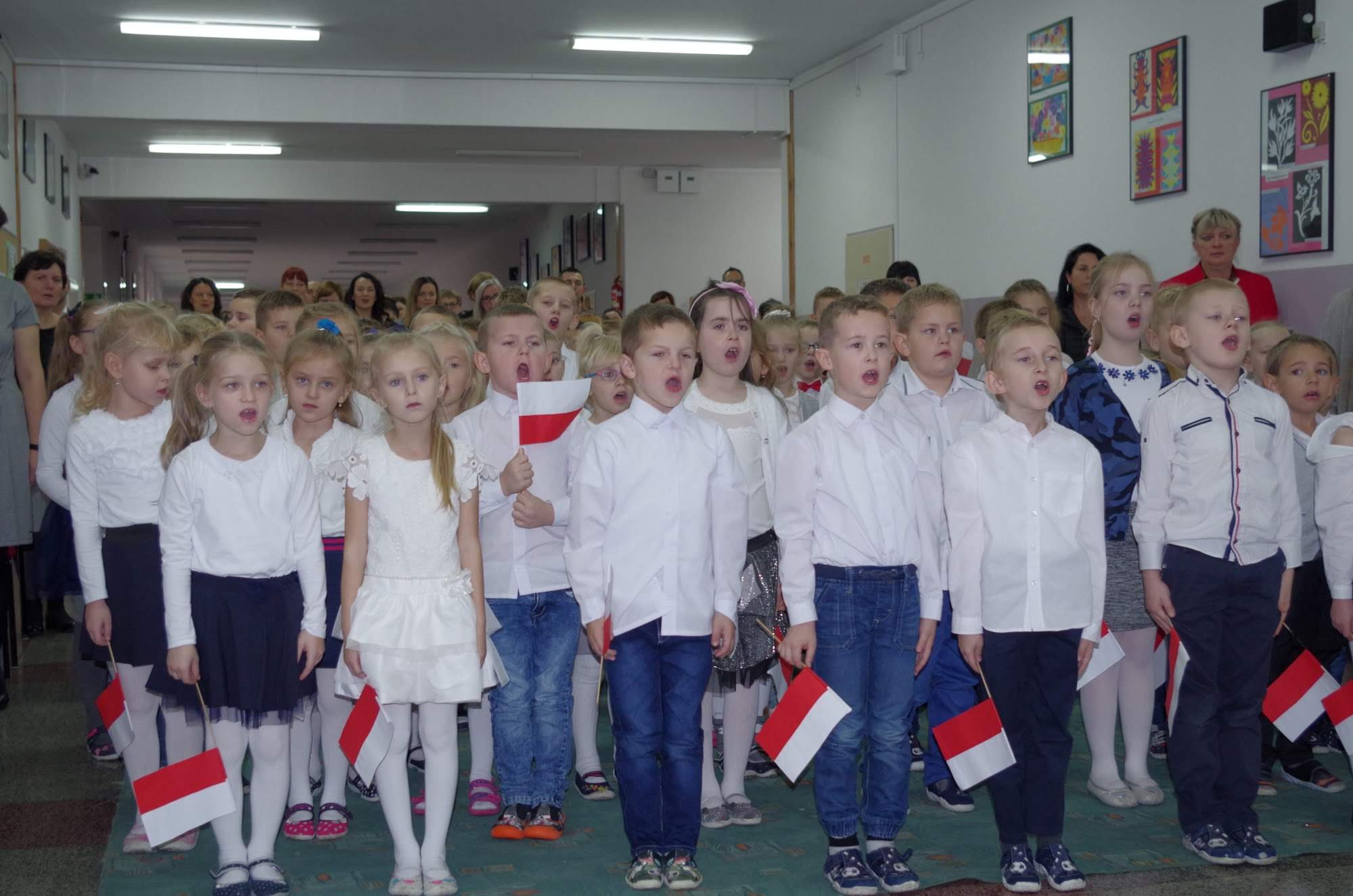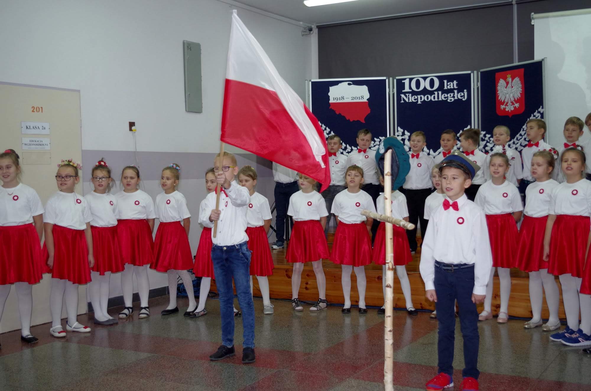 Przytoczony fragment piosenki stał się preludium do uroczystej akademii przygotowanej z okazji narodowego świętowania 100 rocznicy odzyskania przez Polskę Niepodległości. Uczniowie klasy 2c i 3a pod kierunkiem swoich wychowawców zaprezentowali piękne wiersze, tańce i piosenki patriotyczne. Była to dla wszystkich niezwykła lekcja historii, która uczy poszanowania symboli narodowych i miłości Ojczyzny. Te wydarzenia pozostaną na długo w naszej pamięci.