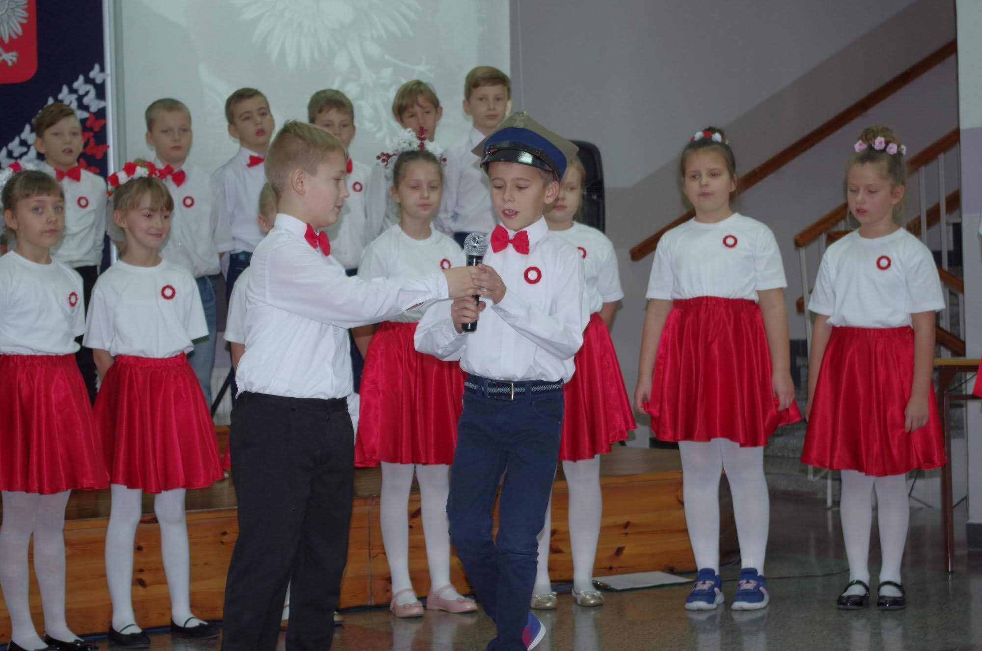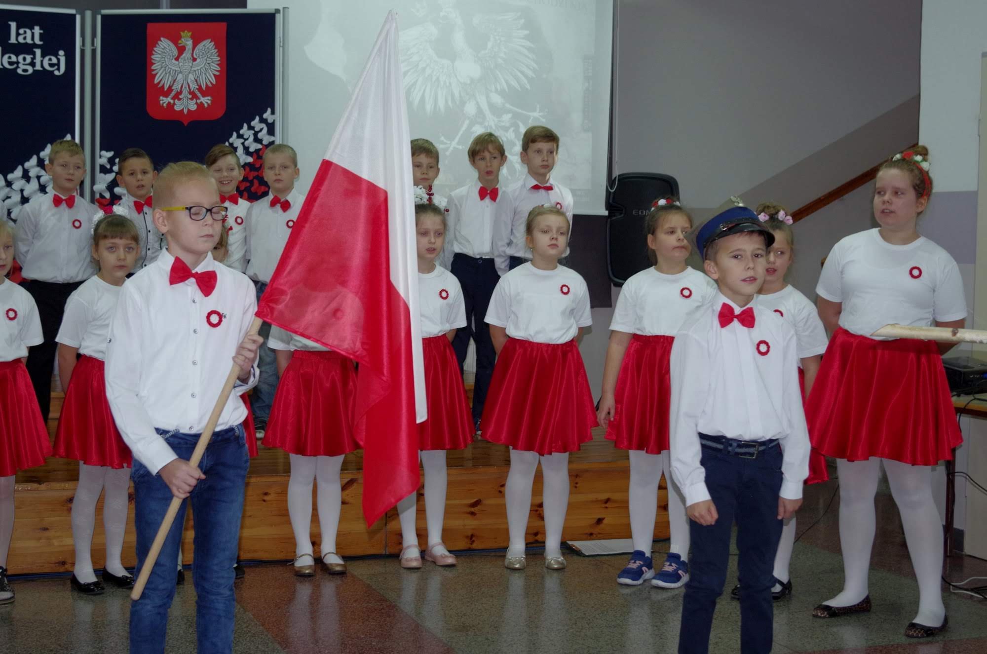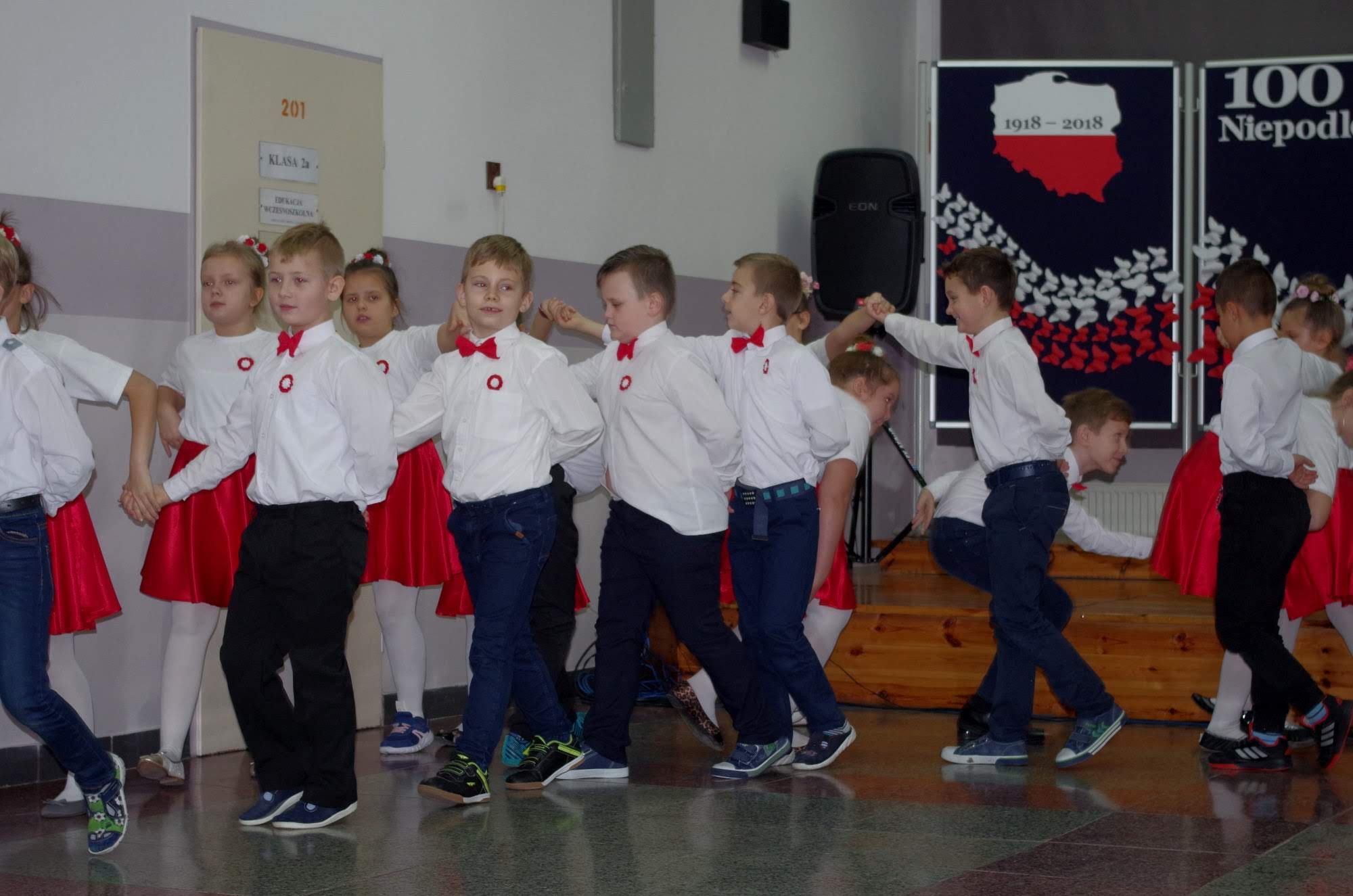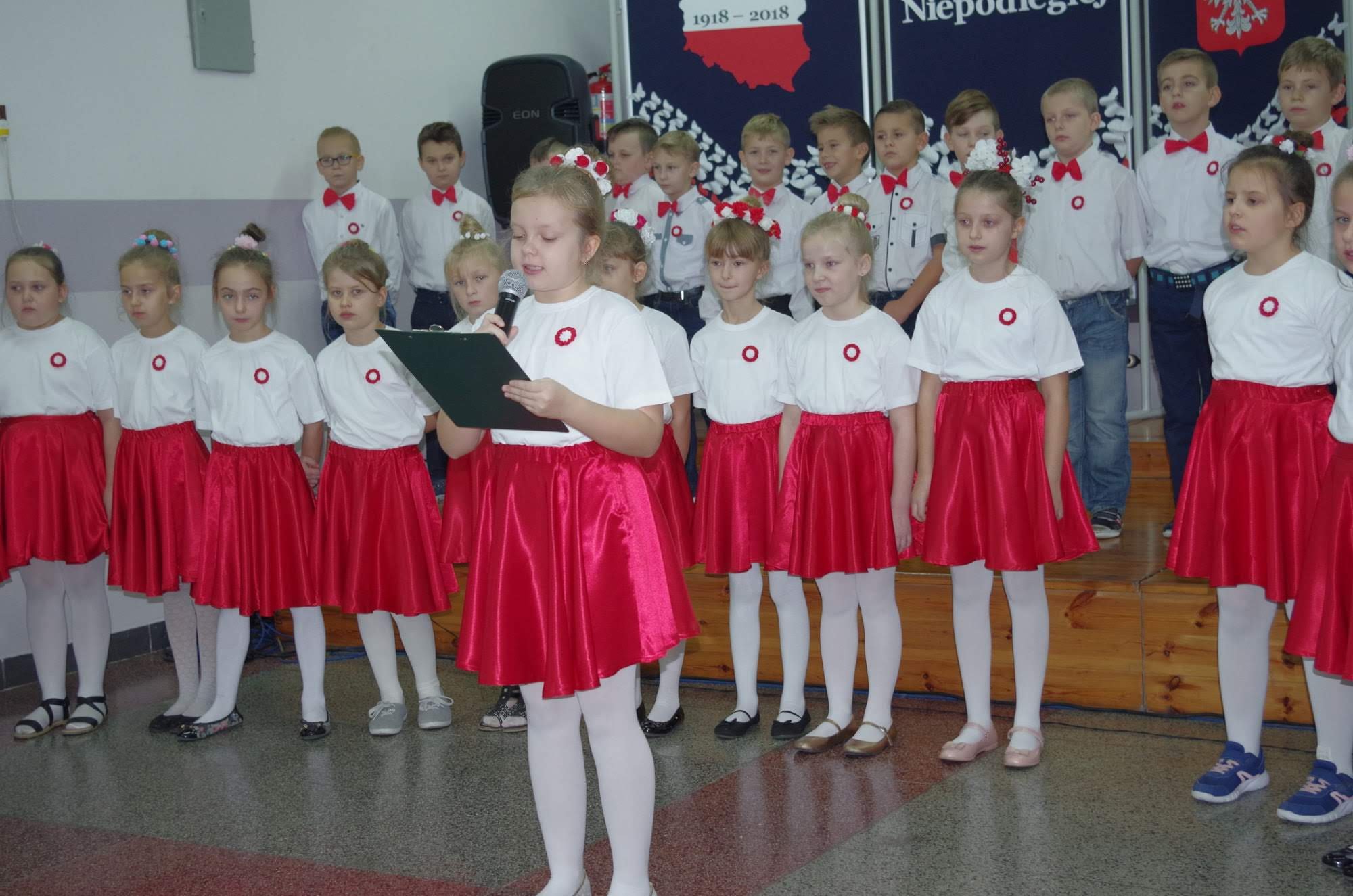 Przytoczony fragment piosenki stał się preludium do uroczystej akademii przygotowanej z okazji narodowego świętowania 100 rocznicy odzyskania przez Polskę Niepodległości. Uczniowie klasy 2c i 3a pod kierunkiem swoich wychowawców zaprezentowali piękne wiersze, tańce i piosenki patriotyczne. Była to dla wszystkich niezwykła lekcja historii, która uczy poszanowania symboli narodowych i miłości Ojczyzny. Te wydarzenia pozostaną na długo w naszej pamięci.