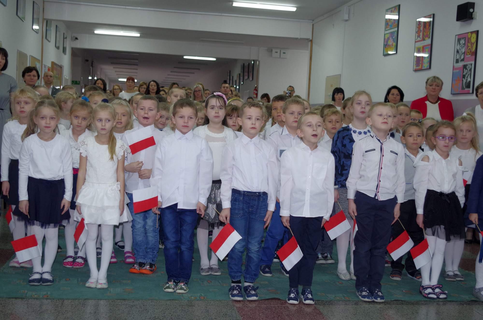 Dzień 9 listopada 2018r. miał w naszej szkole niecodzienny, bardzo uroczysty charakter. Najmłodsi uczniowie naszej szkoły w galowych strojach, z biało-czerwonymi chorągiewkami w dłoniach, w towarzystwie rodziców oraz dziadków uczestniczyli w akademii z okazji Święta Niepodległości.