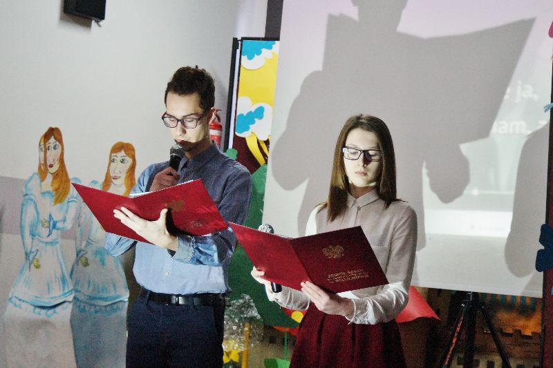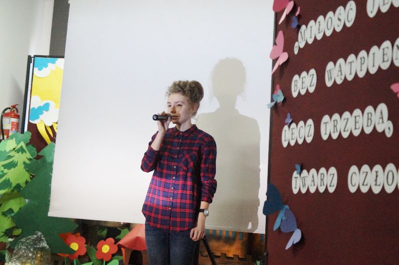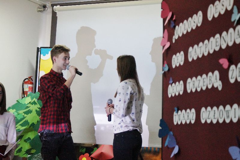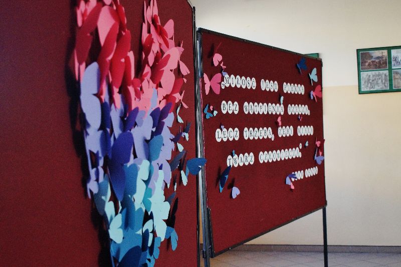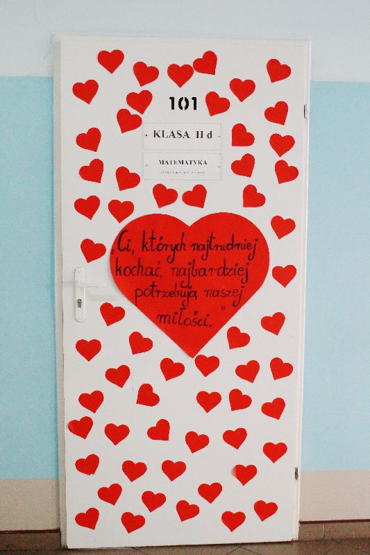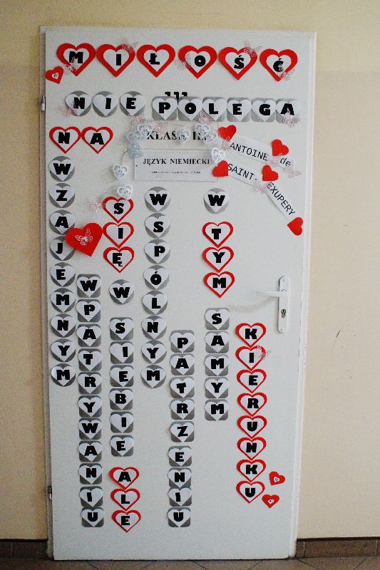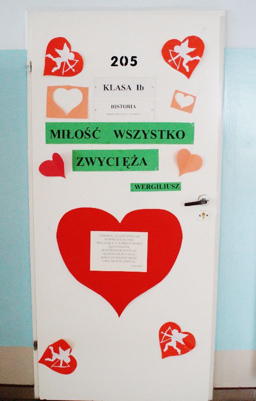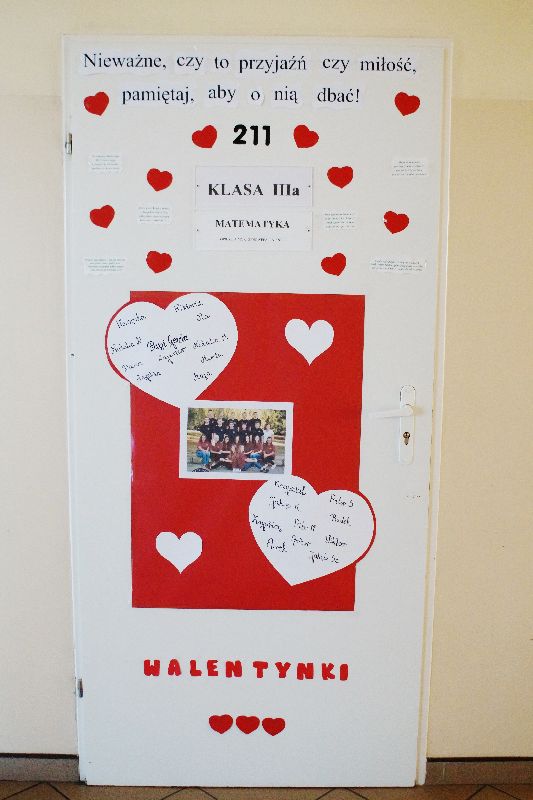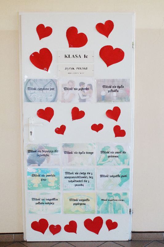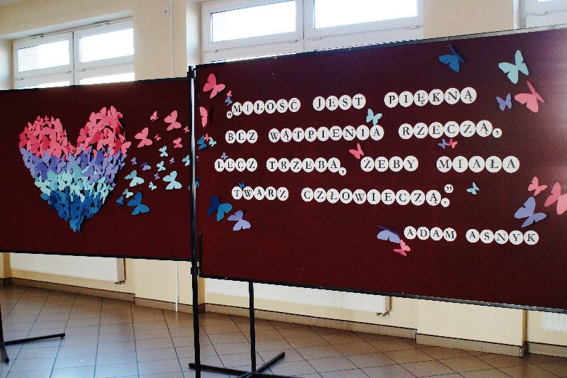 Przez cały tydzień, począwszy od 13 lutego, gimnazjaliści stykali się na każdym kroku (dosłownie!) ze złotymi myślami na temat miłości. Serce szkoły zabiło namacalnie – wszędzie wisiały czerwone symbole miłości. Młodzież samodzielnie przyozdobiła drzwi swoich sal. W gablocie poświęconej projektowi czytelniczemu uczniowie mogli znaleźć „Ludzkie mądrości o miłości”. Mieli również możliwość wzięcia udziału w trzydniowym quizie walentynkowym. Zwieńczeniem tych działań było uczestnictwo w montażu słowno-muzycznym, który odbył się 16 lutego. Uczniowie naszej szkoły wysłuchali kilku najpiękniejszych wierszy o miłości autorstwa m.in. Adama Asnyka, Marii Pawlikowskiej-Jasnorzewskiej, Adama Mickiewicza w wykonaniu swoich rówieśników oraz wspólnie odśpiewali takie piosenki jak „Zakochani są wśród nas” czy „Brunetki, blondynki”. Podczas imprezy ogłoszono też wyniki walentynkowego quizu – zwyciężyła w nim Zuzanna Skrzypczak, uczennica kl. Ia.