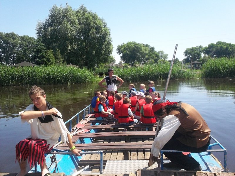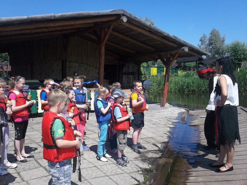 "Z piratami dookoła świata" - to tytuł programu edukacyjno-rekreacyjnego, w którym uczestniczyli uczniowie klasy 1b. Spotkanie z piratami dostarczyło dzieciom wielu niezapomnianych wrażeń. Było pływanie tratwami, poznawanie najciekawszych budowli świata, zwiedzanie baśniowej krainy oraz poszukiwanie ukrytego skarbu. Dodatkowe atrakcje to: mini dyskoteka z "tańczącą lalką", lody, słodycze, kiełbaski z ogniska oraz zabawy na placu zabaw. Wycieczka do ośrodka "Nenufar Club" w Kościanie - jak zapewniają jej uczestnicy - była wyjątkowo udana.