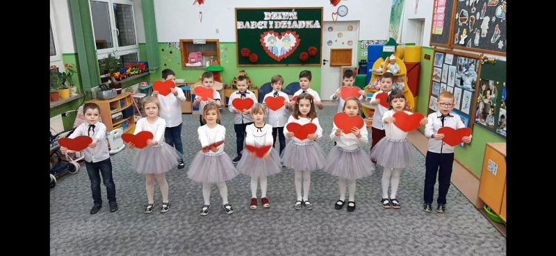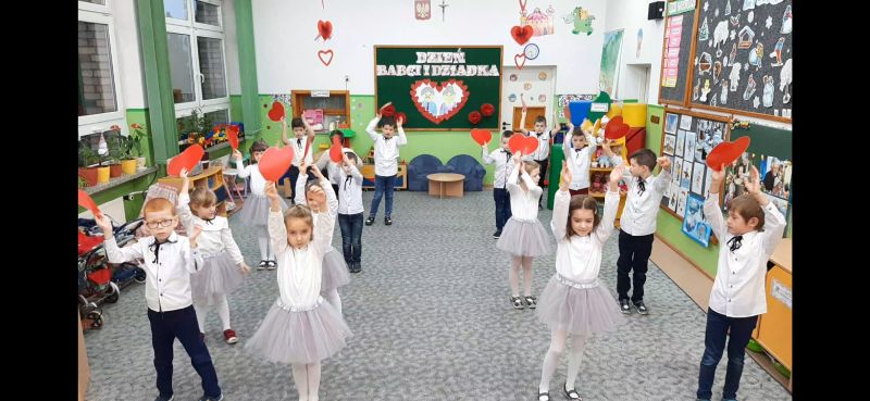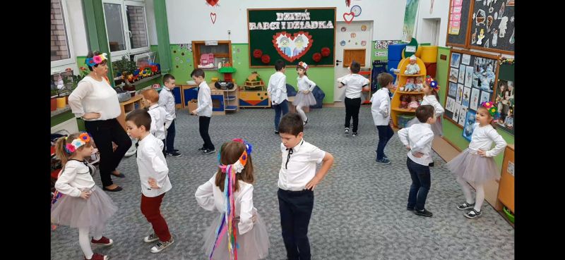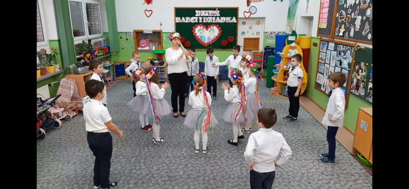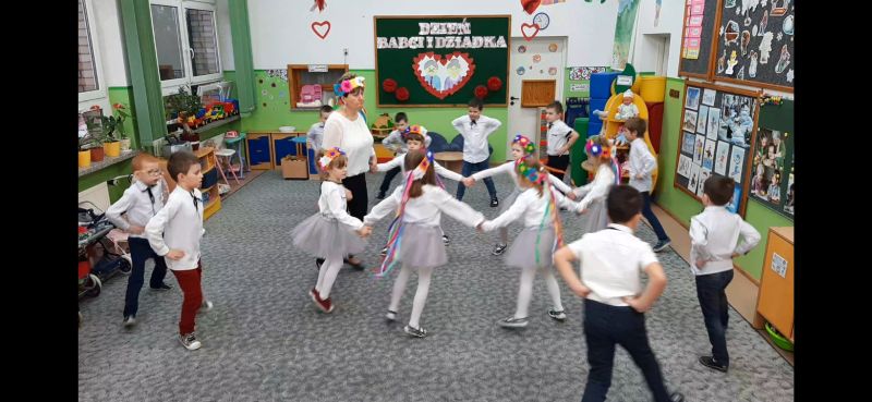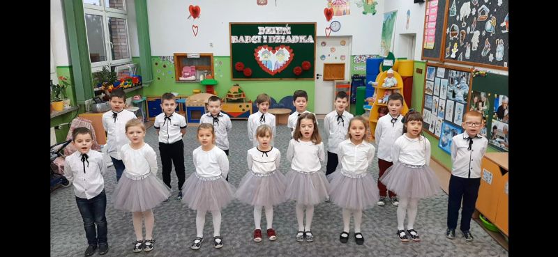 Mimo trwającej pandemii przedszkolaki nie zapomniały o styczniowych solenizantach i 14 stycznia przygotowały  dla nich występy artystyczne online. Dzieci śpiewały piosenki o babci i dziadku , recytowały wierszyki i tańczyły. Wykonały piękne laurki i portrety swoich bliskich, zaśpiewały gromkie Sto Lat i złożyły Babciom i Dziadkom życzenia. Uroczystość ta była wielkim przeżyciem dla dzieci i sprawiła im wiele radości.