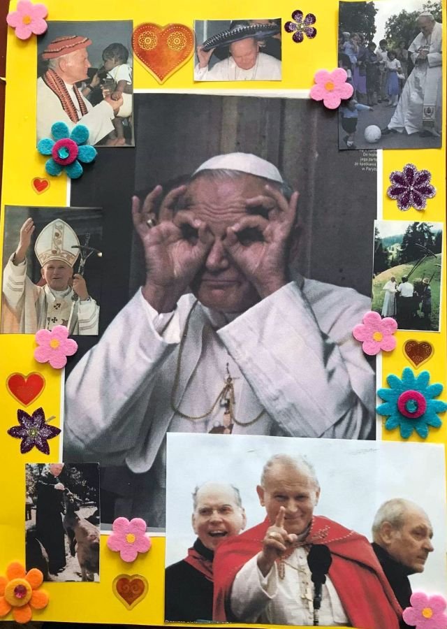 Minęło już 15 lat od śmierci Jana Pawła II, a oni wciąż przychodzą – dzieci, nastolatki, młodzież. Tym razem przynieśli ze sobą świadectwa: talentu, wrażliwości, dojrzałości i otwartego serca. Przyszli ci najmłodsi i ci nieco starsi, by włączyć się – mimo trudnego czasu odosobnienia – w obchody 100. rocznicy urodzin Świętego, który jak nikt ukochał młodzież. Uczniowie Szkoły Podstawowej im. Polskich Noblistów w Wielichowie odpowiedzieli na apel swoich nauczycieli i włączyli się w świętowanie jak tylko potrafili: przygotowali papieskie flagi i plakaty, które zawiesili  w oknach swoich domów, stworzyli specjalny, internetowy numer gazetki szkolnej LUZAK, w całości poświęcony Janowi Pawłowi II, a także nagrali swoje recytacje poezji Karola Wojtyły. Odzew uczniów i ich rodziców, którzy wspierali swoje pociechy w przygotowywaniu plakatów, zaskoczył inicjatorów akcji. Okazało się, że spłynęło w sumie 140 fotografii prac zdobiących okna, z czego największą liczbę stanowią te wykonane przez najmłodszych, wychowanków z klas I-III.