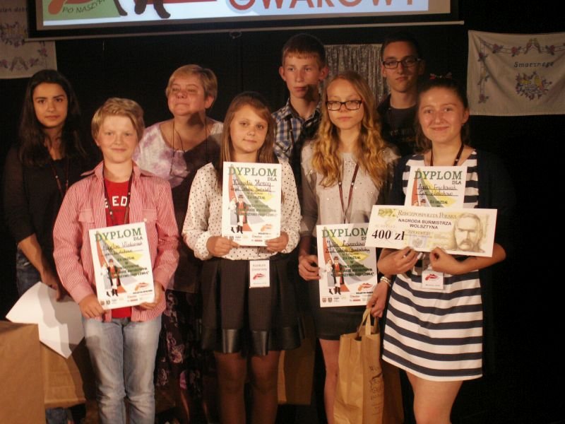 Czworo uczniów naszej szkoły: Paulina Kuleczka 4b, Kinga Krawczyk kl. 4a, Agata Frąckowiak kl. 1b gimnazjum, Kajetan Włodarczak kl. 1b gimnazjum, zdecydowało się wziąć udział w organizowanym przez Wolsztyński Dom Kultury Konkursie Gwarowym „Po naszymu nad Łebrą”. 15 czerwca na scenie razem z uczestnikami wystąpił aktor Teatru Nowego w Poznaniu Michał Grudziński. Młodzieży znany m.in. z serialu „Rodzinka. pl”.
