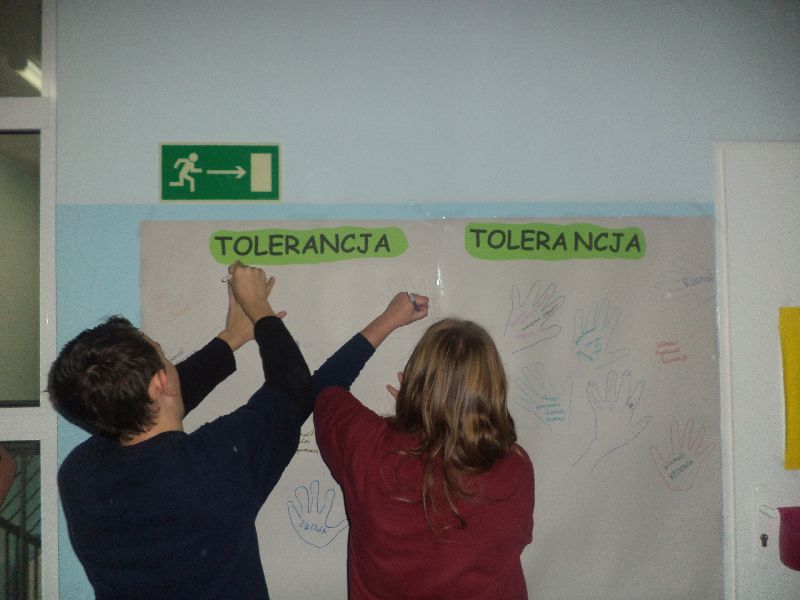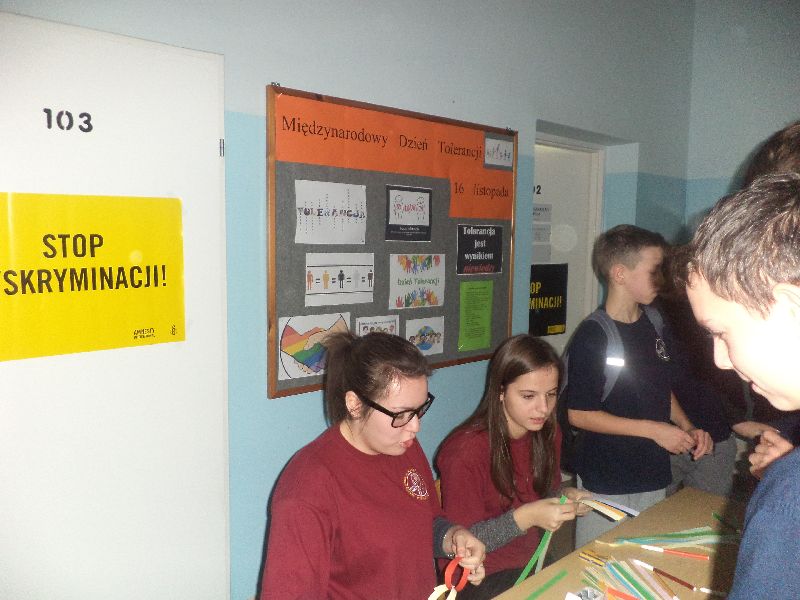 W dzień święta, czyli 16 listopada grupa gimnazjalistów zwróciła uwagę swoich koleżanek i kolegów na zagadnienie tolerancji. Uczniowie mogli wypełnić anonimowo ankietę, której wynik określał czy dana osoba jest tolerancyjna. Na długich przerwach każdy uczeń mógł doczepić swoje ogniwo do „łańcucha tolerancji”. W ten sposób deklarował, że jest osobą tolerancyjną. Kolejnym działaniem było stworzenie definicji tolerancji. Uczniowie mogli odrysować swoją rękę i w niej wpisać hasło związane z tolerancją.