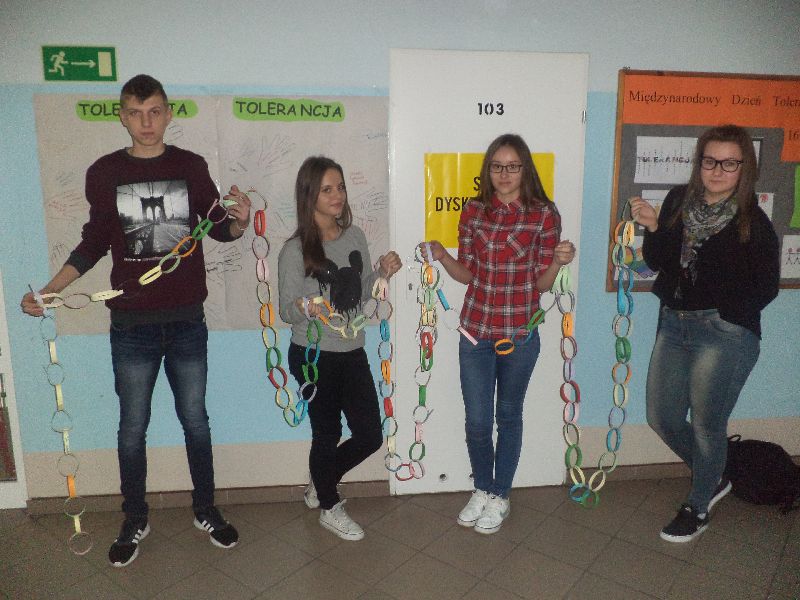 W tym roku nasza szkolna grupa zajmująca się dyskryminacją, podjęła działa związane z Międzynarodowym Dniem Tolerancji. Święto to zostało ustanowione przez Zgromadzenie Ogólne ONZ, by ograniczyć pogłębiające się zjawiska nietolerancji, przemocy, nacjonalizmu, rasizmu jakim towarzyszy marginalizacja i dyskryminacja mniejszości narodowej.