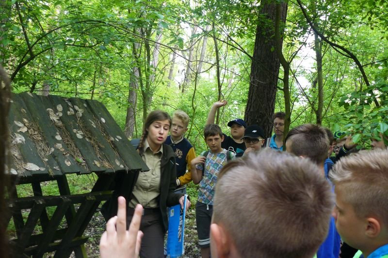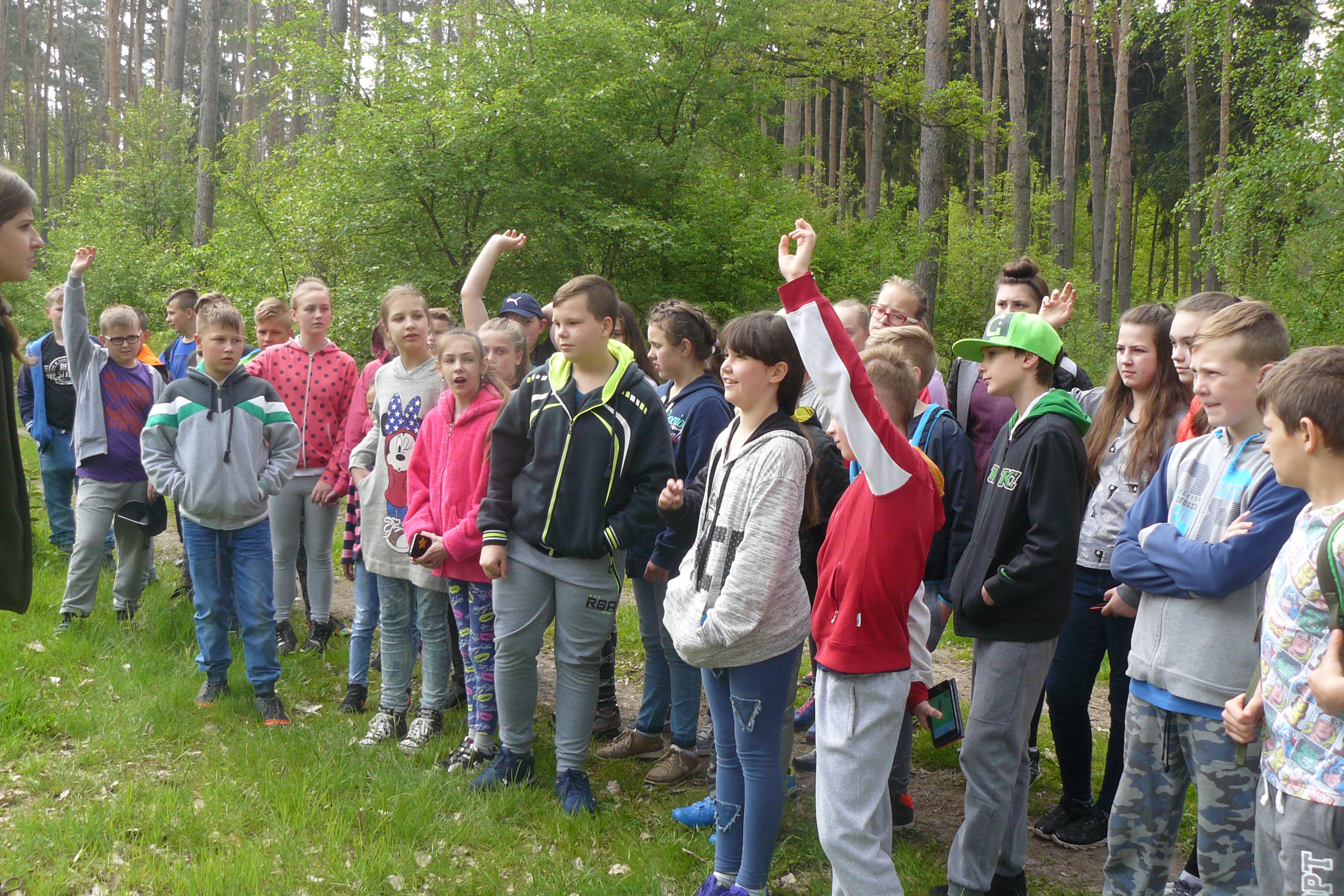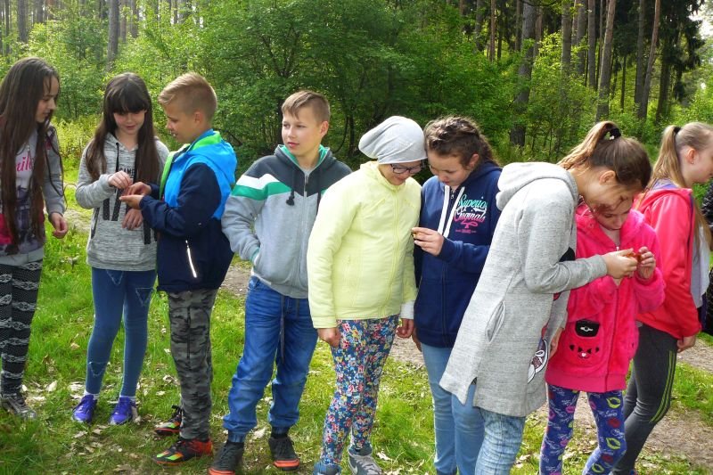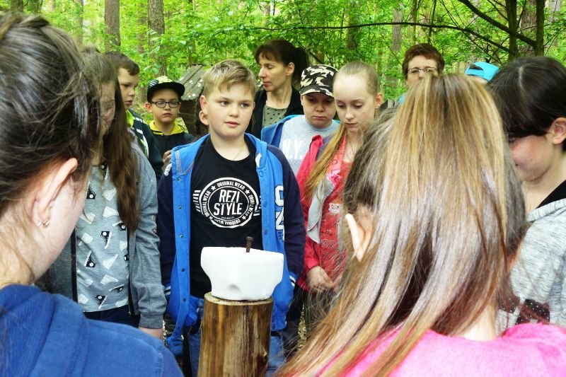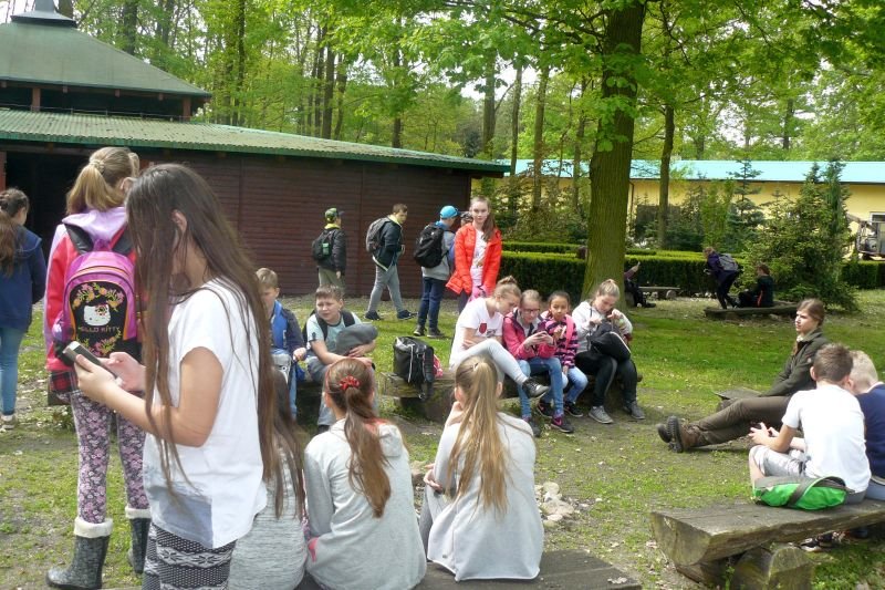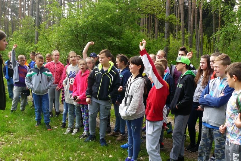 W dniu 16 kwietnia 2017r. uczniowie klas piątych wspólnie ze swoimi wychowawczyniami uczestniczyli w zajęciach z edukacji przyrodniczej w Gospodarstwie Szkółkarskim w Racocie. Po przybyciu na miejsce spotkali się z panią leśnik Magdaleną Marchelek z Nadleśnictwa Kościan, która ciekawie opowiadała im o tym, jak powstaje las i jaka jest jego warstwowa budowa. Przypomniała uczniom o zwyczajach oraz potrzebach leśnych zwierząt i ptaków. Podczas spaceru po lesie poznawali różne gatunki drzew iglastych i liściastych oraz jego mieszkańców, zwłaszcza bogaty świat owadów.