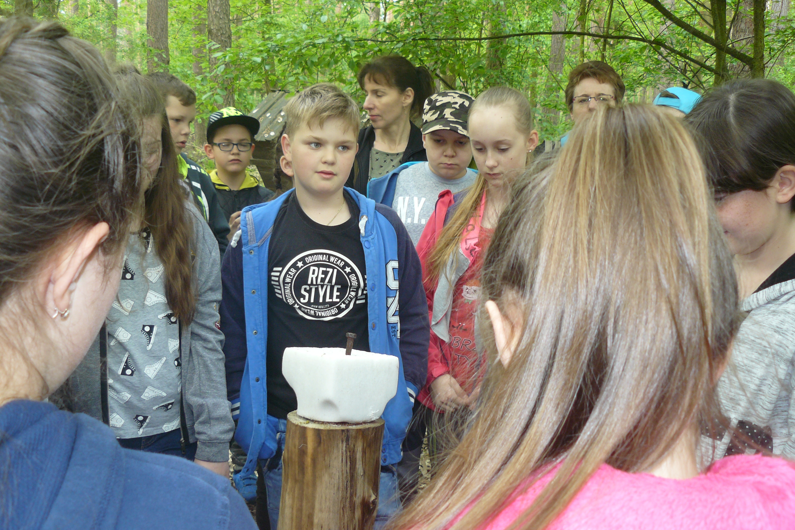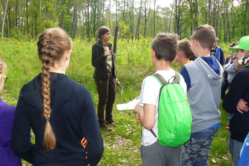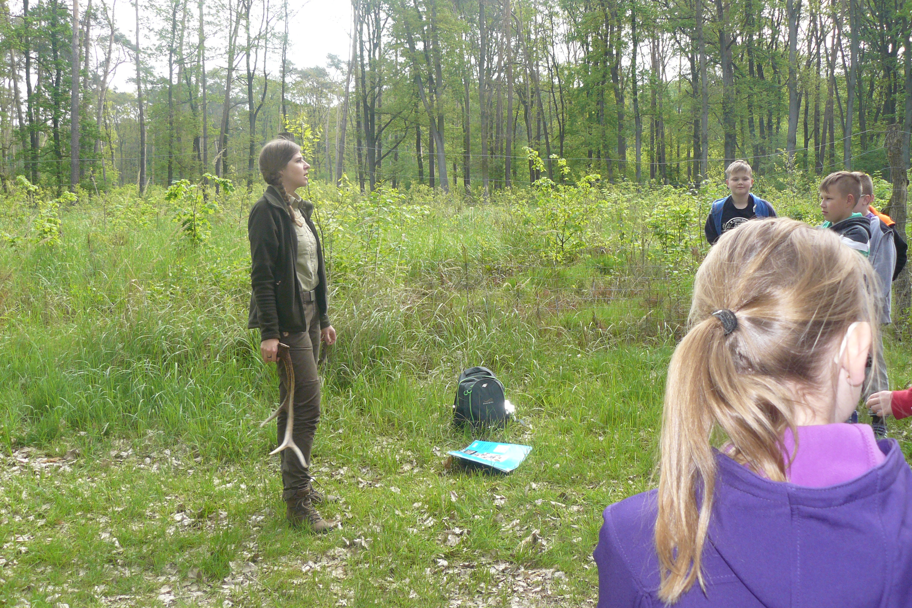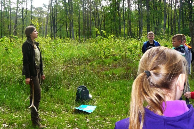 W dniu 16 kwietnia 2017r. uczniowie klas piątych wspólnie ze swoimi wychowawczyniami uczestniczyli w zajęciach z edukacji przyrodniczej w Gospodarstwie Szkółkarskim w Racocie. Po przybyciu na miejsce spotkali się z panią leśnik Magdaleną Marchelek z Nadleśnictwa Kościan, która ciekawie opowiadała im o tym, jak powstaje las i jaka jest jego warstwowa budowa. Przypomniała uczniom o zwyczajach oraz potrzebach leśnych zwierząt i ptaków. Podczas spaceru po lesie poznawali różne gatunki drzew iglastych i liściastych oraz jego mieszkańców, zwłaszcza bogaty świat owadów.