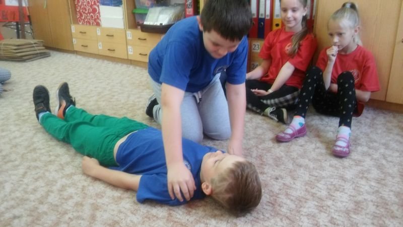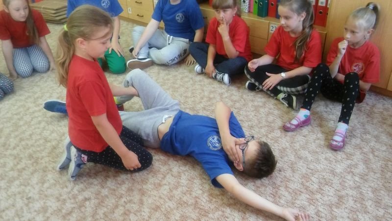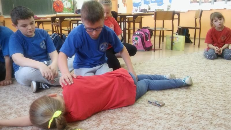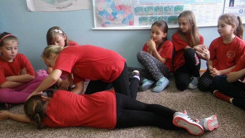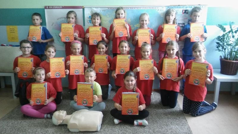 Podobnie jak w roku ubiegłym, w ramach programu edukacyjnego „Ratujemy i uczymy ratować” uczniowie klas II zostali przygotowani do niesienia pierwszej pomocy, a uczniowie klas III przypomnieli sobie te wiadomości w ramach powtórzenia. Program ten prowadzony jest przez Fundację Wielkiej Orkiestry Świątecznej Pomocy i nie jest typowym kursem pierwszej pomocy, lecz wdrażaniem nauki elementów pierwszej pomocy w edukacji wczesnoszkolnej. Uczy podstawowych nawyków i zachowań, które powinny być naturalne dla świadków zdarzeń. Dzieci poznały wszystkie czynności, które składają się na Łańcuch Przeżycia, a które trzeba wykonać, by komuś pomóc. Podstawowe czynności ratujące życie to: 1. Ocena bezpieczeństwa poszkodowanego i osoby ratującej komuś życie 2. Sprawdzenie przytomności 3. Sprawdzenie oddechu 4. Wezwanie pomocy 5. Pozycja boczna (jeśli jest oddech) 6. Wykonywanie ucisków klatki piersiowej (gdy nie ma oddechu) Pomocą w przyswojeniu tych wiadomości był podręcznik dla każdego ucznia, film edukacyjny oraz zajęcia praktyczne, na których dzieci z chęcią wykonywały i uczyły się kolejnych czynności ratujących życie. Na koniec zajęć każdy uczestnik otrzymał Certyfikat udziału w zajęciach Programu Edukacyjnego „Ratujemy i uczymy ratować”. Zajęcia prowadziły nauczycielki: Małgorzata Weiss, Małgorzata Rombel i Maria Andrzejewska