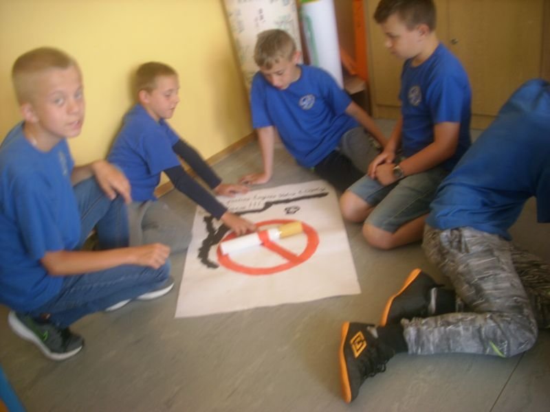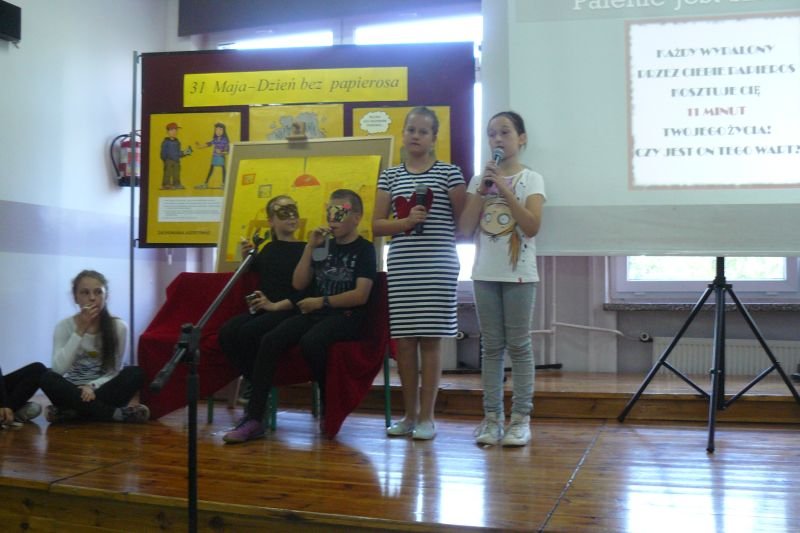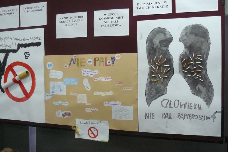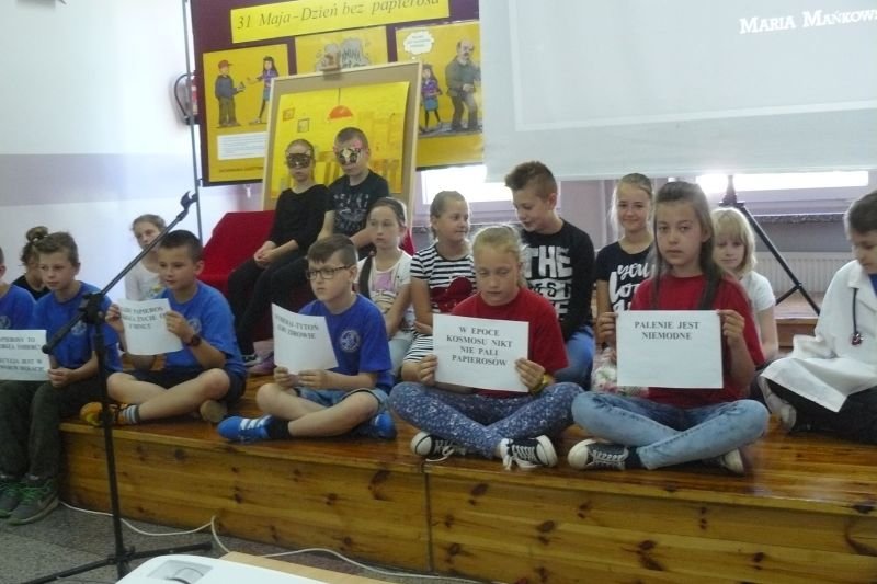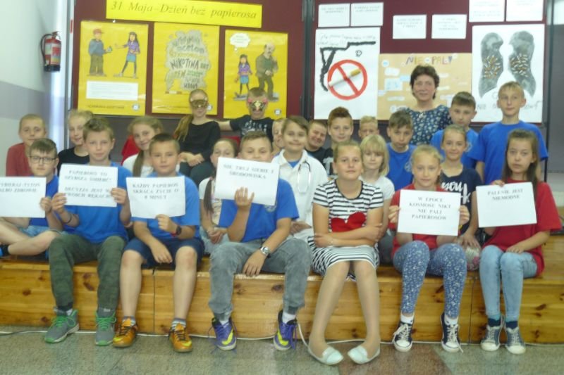 W roku szkolnym 2016/2017 ruszyła I edycja nowego programu antytytoniowej edukacji zdrowotnej „Bieg po zdrowie”, skierowanego do dzieci z IV klas szkół podstawowych, a więc w wieku 9-10 lat, czyli grupy wiekowej będącej tuż przed inicjacją tytoniową.Program został opracowany w Głównym Inspektoracie Sanitarnym w Warszawie we współpracy z ekspertami z Wydziału Psychologii Uniwersytetu Warszawskiego. W obecnym roku szkolnym grupą realizująca program byli uczniowie klasy 4a, zaś grupę kontrolną stanowili uczniowie klasy 4b naszej szkoły.Zajęcia przeprowadzane były od stycznia do czerwca w ramach lekcji wychowawczych w klasie 4a. Prowadzone były za pomocą zróżnicowanych metod aktywizujących. Podczas cyklu zajęć dzieci przeprowadzały wywiady z osobami niepalącymi, liczyły koszty jakie generuje palenie papierosów, uczyły się zachowań asertywnych, pracowały w grupach przy tworzeniu antyreklamy dla papierosów – „Nie bądź śmieszny i nie pal”, tworzyły kampanię reklamową – „Jak to zrobić, żeby inni ludzie nie palili?”, tworzyły komiks z bohaterami programu, przygotowywały prezentacje multimedialną – „Jak to zrobić, żeby nie palić papierosów?”, przygotowały przedstawienie pt.: ”Nigdy nie pal!” - dla swoich kolegów z klas 4 – 6. Podstawą zajęć było stymulowanie kreatywności i aktywności. Uczniowie byli zachęcani do aktywnego udziału poprzez dyskusje, wymianę doświadczeń, spostrzeżeń, refleksji i pomysłów. Aktywny udział sprzyjał identyfikowaniu się z omawianą tematyką, zwiększał wiedzę na temat zdrowia w kontekście szkodliwości palenia papierosów i e - papierosów, kształtował podstawowe umiejętności w zakresie asertywnego zachowania i motywował do tego, aby zdobytą wiedzę i umiejętności stosować w codziennym życiu. Bohaterami łączącymi treści poszczególnych spotkań była dwójka uczniów czwartej klasy szkoły podstawowej, Natalia i Kuba. Wydarzenia z ich życia były tłem poruszanych tematów. Uczniowie przed rozpoczęciem cyklu lekcji i na ostatnich zajęciach wypełniali ankiety dotyczące wiedzy o zdrowiu, a po zakończeniu programu również ankietę ewaluacyjną dotyczącą realizowanych zagadnień. Uczniowie klasy 4b nie realizowali programu. Wypełniali tylko ankiety w styczniu i czerwcu. Program był skierowany także do rodziców uczniów, w celu zwiększenia skuteczności działań profilaktycznych. Odbyły się dwa spotkania z rodzicami ( w styczniu i maju).Pierwsze spotkanie odbyło się przed rozpoczęciem realizacji programu na zebraniu z rodzicami. Celem spotkania było przekazanie rodzicom informacji na temat założeń i sposobów realizacji programu profilaktyki palenia tytoniu. Na tym spotkaniu wykorzystałam również cykl krótkich filmików poświęconych treningowi umiejętności wychowawczych. Drugie spotkanie z rodzicami odbyło się po zrealizowaniu programu na zebraniu z rodzicami. Celem spotkania było podsumowanie przeprowadzonych zajęć profilaktycznych z uczniami. Podobnie jak na poprzednim spotkaniu, wykorzystałam filmiki pt. „Dlaczego warto budować i dbać o poprawną komunikację z dzieckiem?”. Uczniowie bardzo chętnie realizowali ten program. Rodzice najbardziej docenili walory edukacyjne i ciekawe zadania dla dzieci. Program nie tylko dzieciom, ale też dorosłym uświadomił, jak szkodliwe jest palenie.