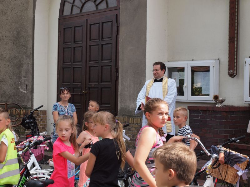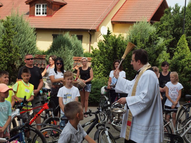 Zgodnie z tradycją, uczestnicy rowerowego spotkania zebrali się przy Szkole Podstawowej im. Polskich Noblistów w Wielichowie, skąd przejechali pod kościół parafialny, gdzie czekał już na nich ksiądz wikary Adrian Przybecki, który poświęcił wszystkie pojazdy. Chwilę później rowerzyści zatrzymali się przy budynku Urzędu Miasta. Tam właśnie oczekiwała ich burmistrz Wielichowa – Honorata Kozłowska, w towarzystwie Komendanta Komisariatu Policji w Rakoniewicach – Tomasza Górnego. Policjant podkreślał jak ważne jest właściwe zachowanie na drodze,  a także dbałość o właściwe wyposażenie, m.in. kask rowerowy. Podobnie jak w ubiegłych latach, burmistrz przygotowała dla uczestników rajdu pamiątkowe gadżety, które nie tylko zapewniają  widoczność na drodze, ale są też niezwykle praktyczne.