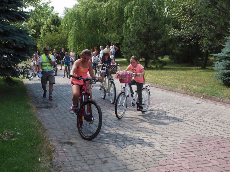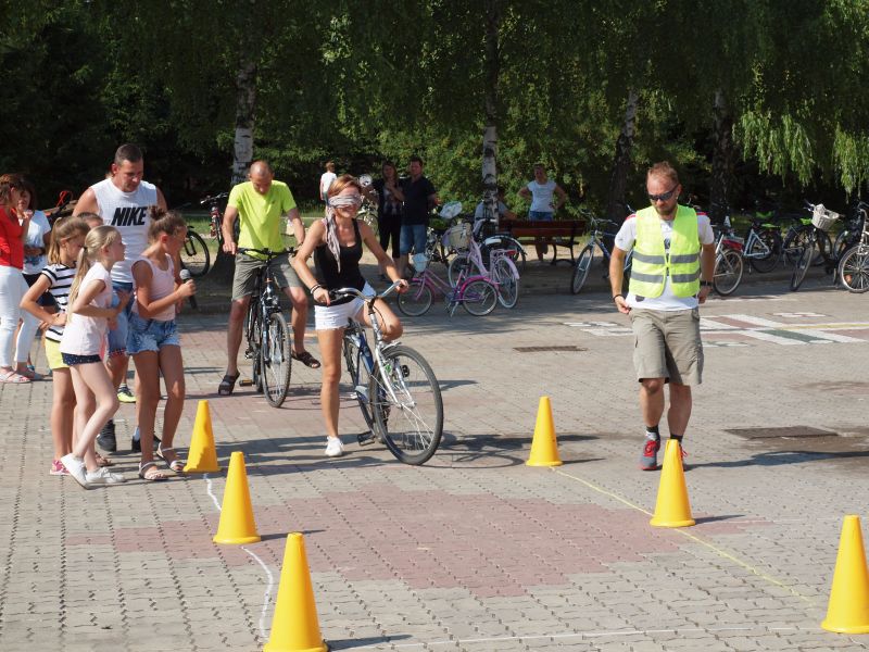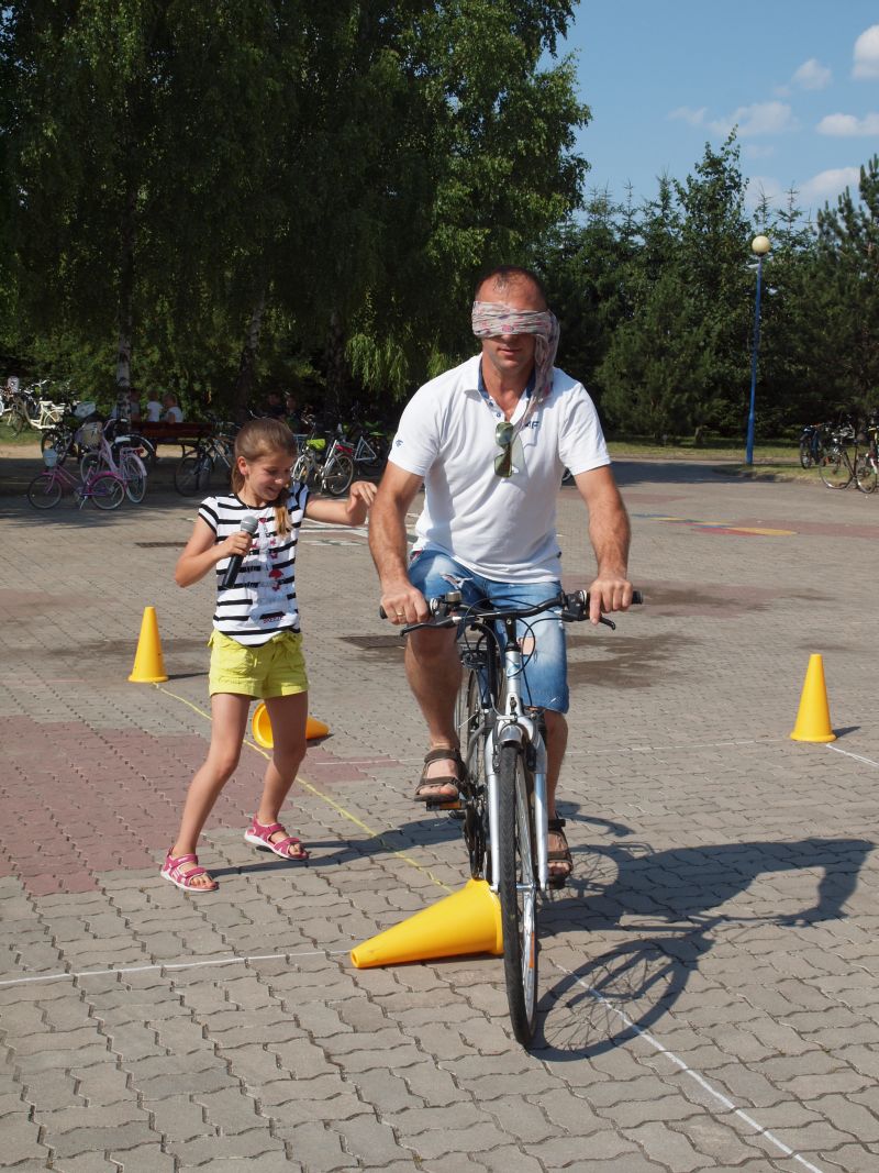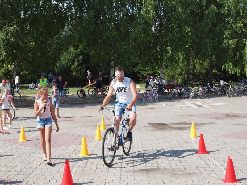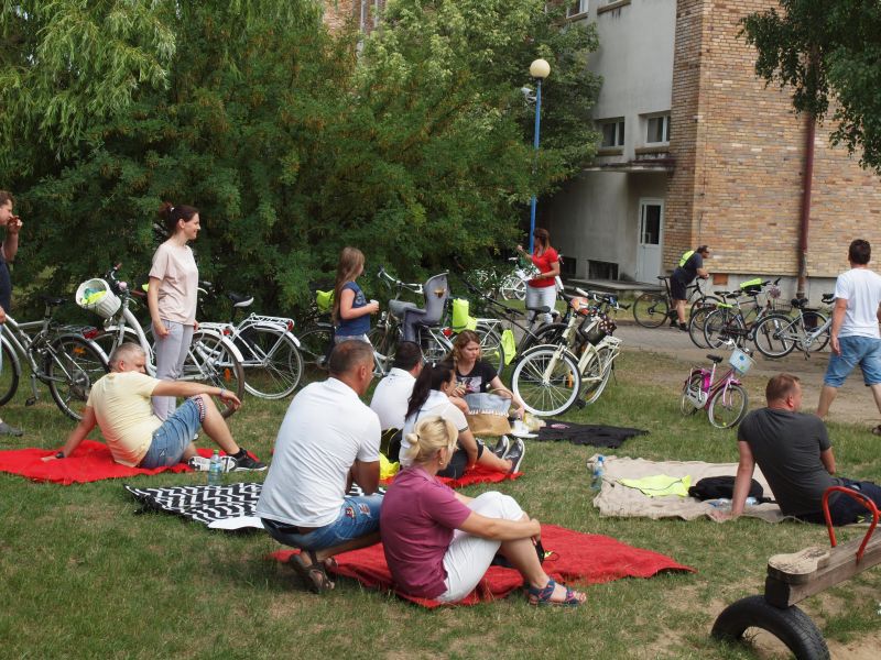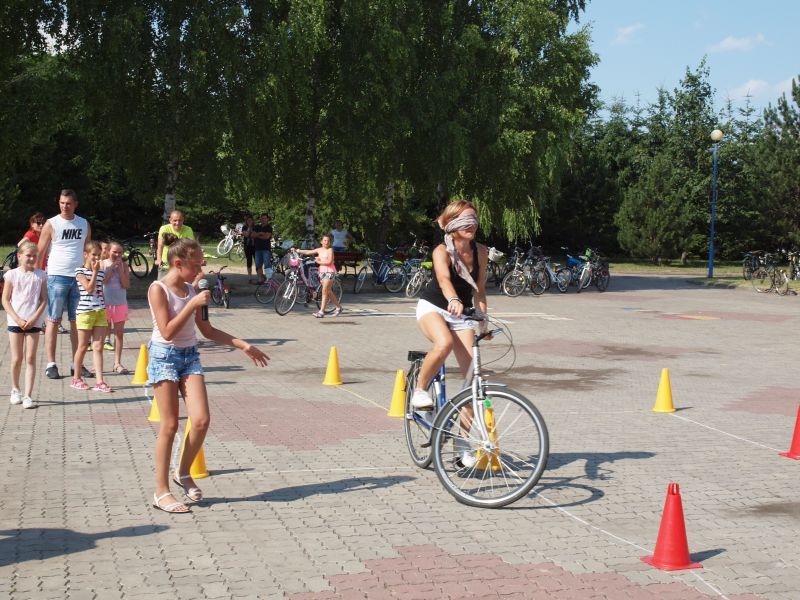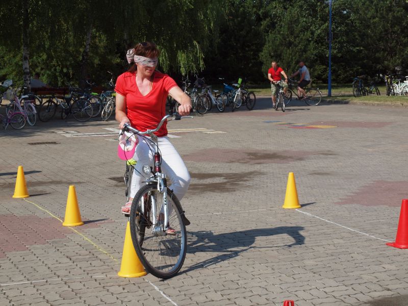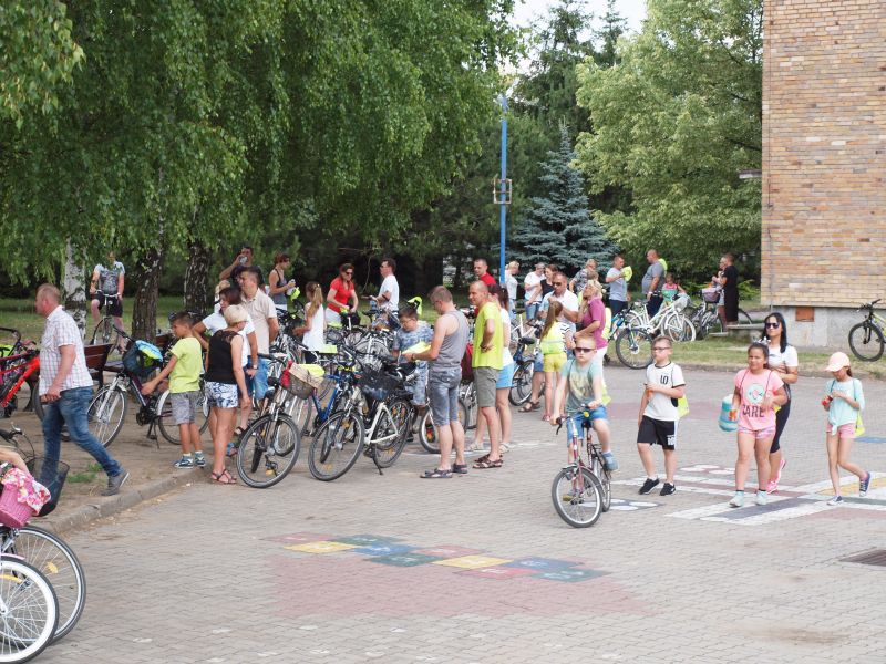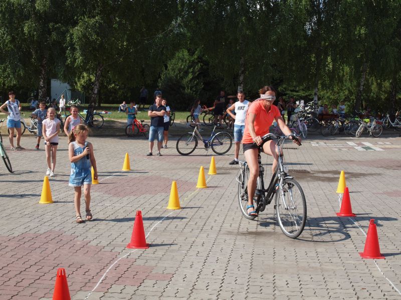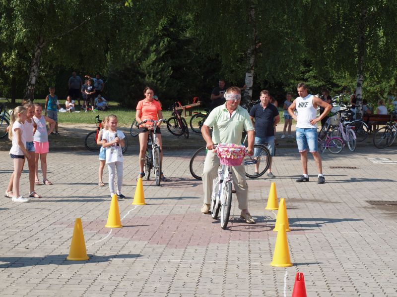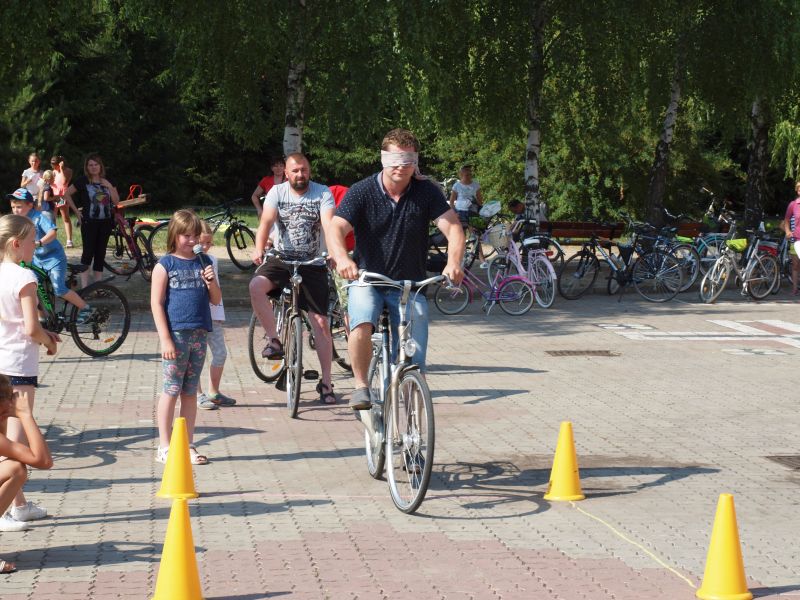 Po przejechaniu ulicami Wielichowa, rowerzyści, wśród których znalazła się także dyrektor szkoły - Bogumiła Andrzejewska, dotarli ponownie na teren szkoły, gdzie rozpoczął się piknik. Dorośli i dzieci rozlokowali się w cieniu, by odpocząć po trudach jazdy, uzupełnić płyny, a także posilić się. Na najgłodniejszych czekało już ognisko, przy którym można było upiec kiełbaski. Nie byłoby pikniku bez dodatkowych atrakcji – a tych nie brakowało. Uczestnicy mogli sprawdzić się w różnego rodzaju konkurencjach – sprawnościowych, intelektualnych, a także plastycznych. Duże zainteresowanie wzbudziła krzyżówka, którą należało jak najszybciej uzupełnić. Aby to jednak zrobić, należało znaleźć na terenie wokół szkoły kody QR, pod którymi ukryte zostały kolejne pytania. Emocje udzielały się zarówno dzieciom, jak i dorosłym. Podobnie było zresztą także w trakcie innych konkurencji, wśród których znalazły się: „Kto dalej” (rowerzysta naciskał jeden raz na pedał i usiłował dojechać jak najdalej siłą rozpędu) , „Włoski wyścig” (wygrywa ta osoba, która najwolniej pokona wyznaczony dystans), „Byle do celu” (dziecko udziela wskazówek dorosłemu jadącemu na rowerze z zawiązanymi oczami) oraz rzut podkową. Wiedzy na temat udzielania pierwszej pomocy przedmedycznej wymagało zadanie dla grup rodzinnych, które musiały odpowiednio zachować się w sytuacji zagrożenia. Zainteresowani mogli doskonalić ponadto  znajomość przepisów ruchu drogowego na terenie miasteczka drogowego, rysować rowerowe graffiti, czy też układać puzzle przedstawiające znane polskie zabytki. Nie zabrakło także osób, które chciały sprawdzić się w toczeniu obręczy. Sporą atrakcją była ponadto konkurencja pt. „Eko-moda”, której uczestnicy musieli przygotować strój z materiałów nadających się do ponownego przetworzenia. Trzeba przyznać, że pomysłowość i wyobraźnia projektantów zachwyciła tych, którzy mogli obejrzeć prezentację wszystkich modeli. Każdy, kto zdecydował się wziąć udział choćby w jednej konkurencji, mógł liczyć na słodką Krówkę, a nawet na nieco bardziej atrakcyjne nagrody.
