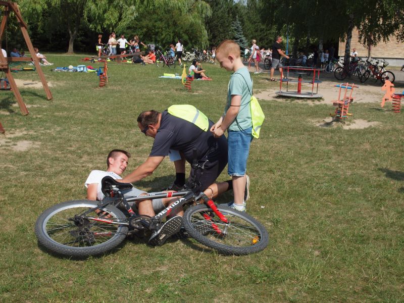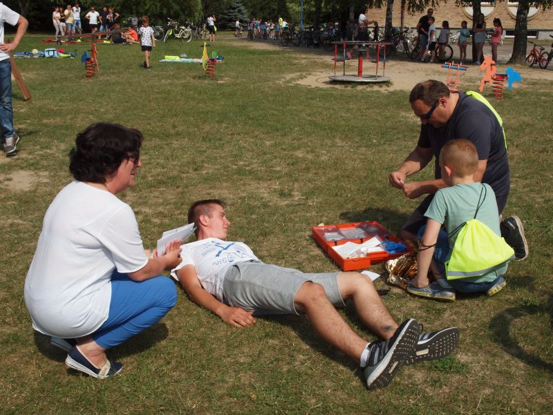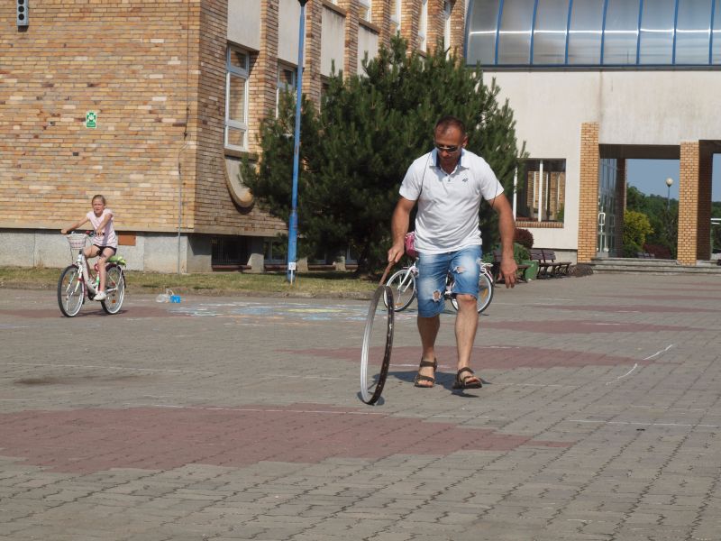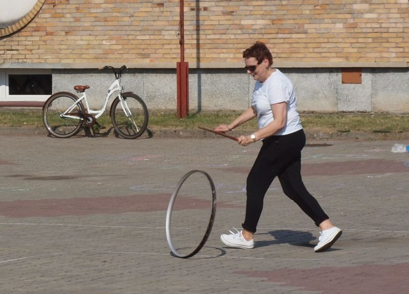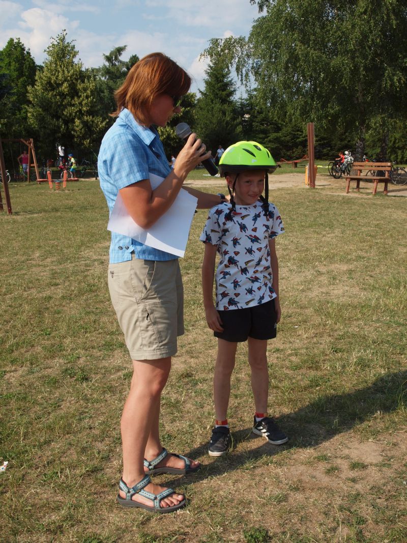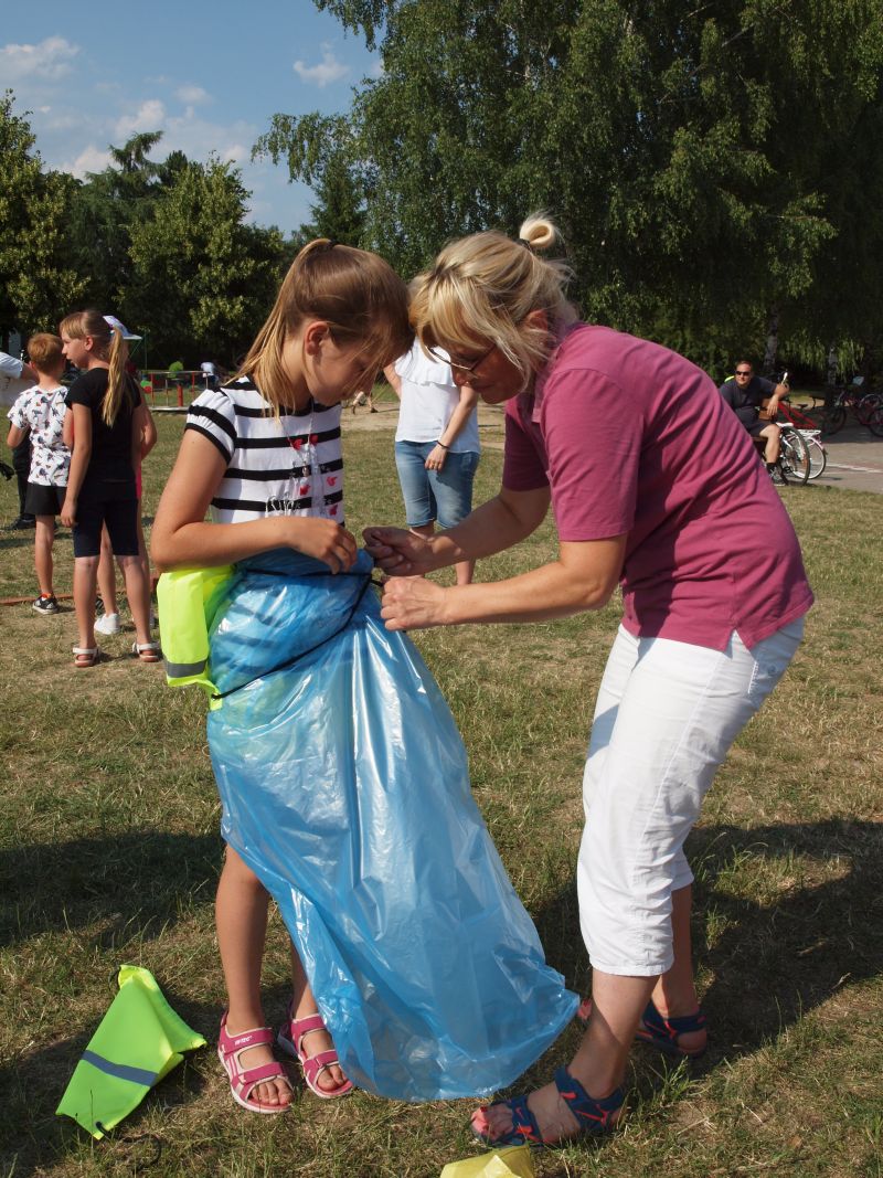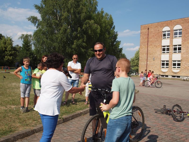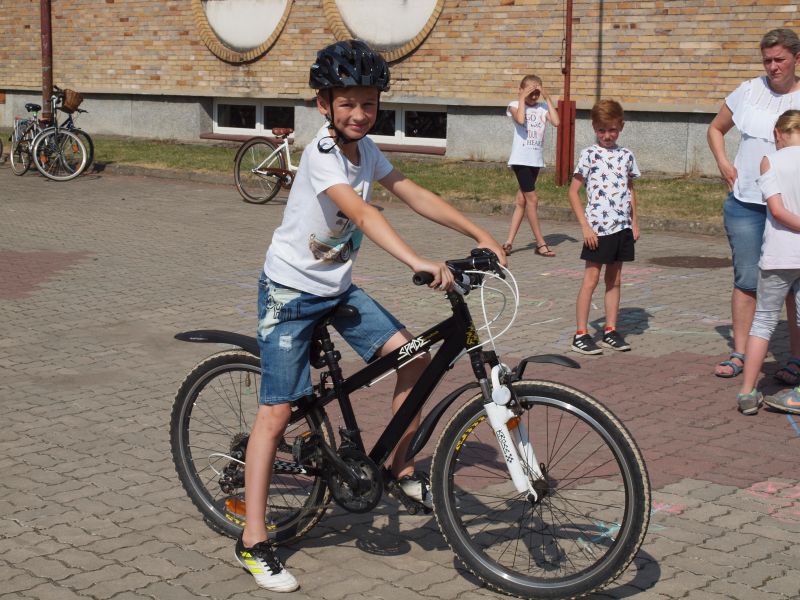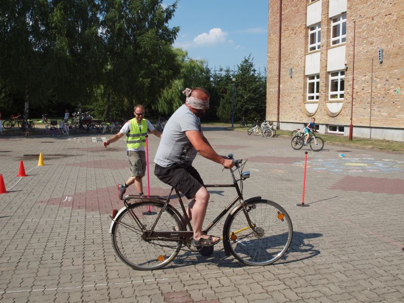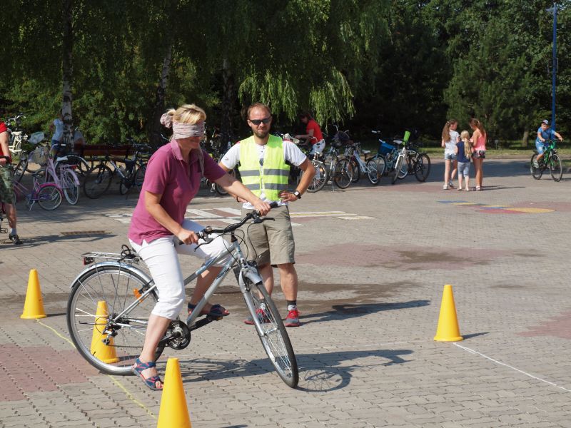 Po przejechaniu ulicami Wielichowa, rowerzyści, wśród których znalazła się także dyrektor szkoły - Bogumiła Andrzejewska, dotarli ponownie na teren szkoły, gdzie rozpoczął się piknik. Dorośli i dzieci rozlokowali się w cieniu, by odpocząć po trudach jazdy, uzupełnić płyny, a także posilić się. Na najgłodniejszych czekało już ognisko, przy którym można było upiec kiełbaski. Nie byłoby pikniku bez dodatkowych atrakcji – a tych nie brakowało. Uczestnicy mogli sprawdzić się w różnego rodzaju konkurencjach – sprawnościowych, intelektualnych, a także plastycznych. Duże zainteresowanie wzbudziła krzyżówka, którą należało jak najszybciej uzupełnić. Aby to jednak zrobić, należało znaleźć na terenie wokół szkoły kody QR, pod którymi ukryte zostały kolejne pytania. Emocje udzielały się zarówno dzieciom, jak i dorosłym. Podobnie było zresztą także w trakcie innych konkurencji, wśród których znalazły się: „Kto dalej” (rowerzysta naciskał jeden raz na pedał i usiłował dojechać jak najdalej siłą rozpędu) , „Włoski wyścig” (wygrywa ta osoba, która najwolniej pokona wyznaczony dystans), „Byle do celu” (dziecko udziela wskazówek dorosłemu jadącemu na rowerze z zawiązanymi oczami) oraz rzut podkową. Wiedzy na temat udzielania pierwszej pomocy przedmedycznej wymagało zadanie dla grup rodzinnych, które musiały odpowiednio zachować się w sytuacji zagrożenia. Zainteresowani mogli doskonalić ponadto  znajomość przepisów ruchu drogowego na terenie miasteczka drogowego, rysować rowerowe graffiti, czy też układać puzzle przedstawiające znane polskie zabytki. Nie zabrakło także osób, które chciały sprawdzić się w toczeniu obręczy. Sporą atrakcją była ponadto konkurencja pt. „Eko-moda”, której uczestnicy musieli przygotować strój z materiałów nadających się do ponownego przetworzenia. Trzeba przyznać, że pomysłowość i wyobraźnia projektantów zachwyciła tych, którzy mogli obejrzeć prezentację wszystkich modeli. Każdy, kto zdecydował się wziąć udział choćby w jednej konkurencji, mógł liczyć na słodką Krówkę, a nawet na nieco bardziej atrakcyjne nagrody.