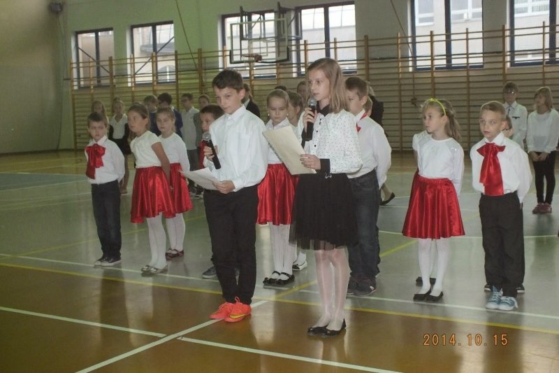 W roku program artystyczny przygotowali uczniowie klas: 2a, 2b, 4a i 5b, pod kierunkiem swoich wychowawczyń oraz nauczyciela muzyki Damiana Popiołkiewicza. Oprócz wierszy i piosenek zebrani  na akademii usłyszeli również żarty o tematyce szkolnej oraz obejrzeli krótką scenkę z życia pewnej klasy.