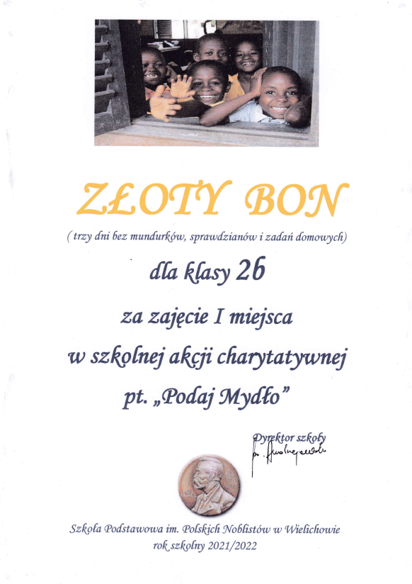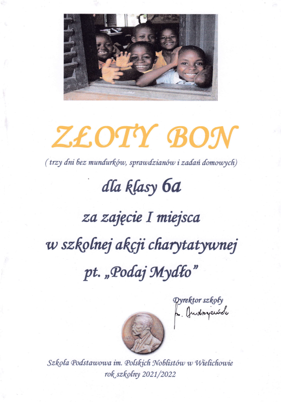 I miejsce – klasa 6a – ZŁOTY BON