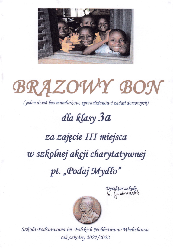 III miejsce – klasa 3a – BRĄZOWY BON
