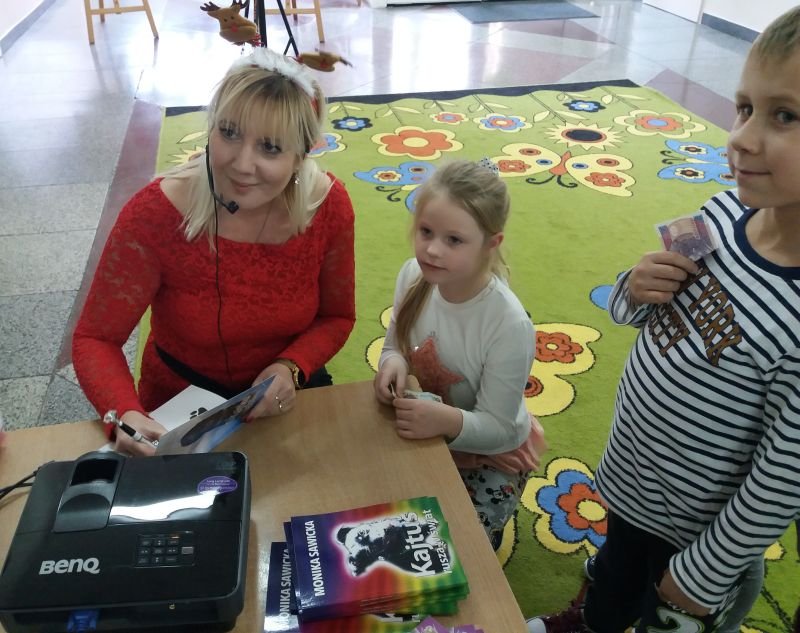 Autorka książek dla dzieci i nie tylko gościła w naszej zerówce 19 listopada w grupie ,,Kubusie” i ,,Tygryski”. Pisarka -Monika Sawicka pisze książki dla dzieci i dorosłych, jest dziennikarką i edukatorką. Po lekturze jej książek wielu ludzi pragnie porozmawiać sami z sobą. Porusza bowiem tematy ważne i trudne ,które przydarzyły się wielu ludziom i mogą przydarzyć się każdemu z nas. Spotkanie dla przedszkolaków nosiło tytuł ,,Kajtusiowe opowieści”. Autorka przybliżyła dzieciom postać psa Kajtusia. Psa ,który jest postacią autentyczną i odegrał w życiu rodziny Pani Moniki ogromną rolę i który pozostanie w jej pamięci na zawsze. Spotkanie dla przedszkolaków zawierało w sobie oprócz historii Kajtka elementy tradycji świąt bożenarodzeniowych. Dzieci mogły posłuchać o tradycjach świątecznych w różnych miejscach w Polsce. Zostały przeprowadzone warsztaty plastyczce, na których dzieci rysowały list do Mikołaja .Po spotkaniu uczestnicy mogli zakupić książkę z autografem.
