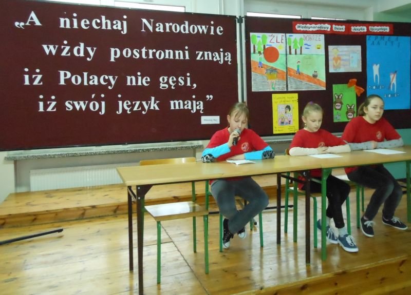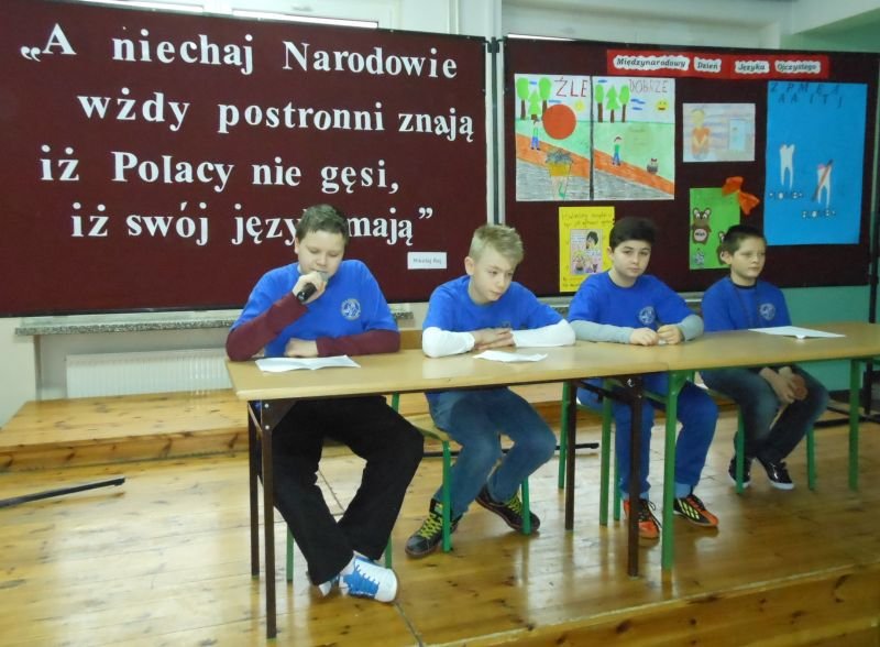 Dnia 19 lutego 2014r. uczniowie klas IV – VI, po raz drugi, wzięli udział w obchodach (przypadającego 21 lutego) Międzynarodowego Dnia Języka Ojczystego. Hasłem tegorocznego apelu były słowa poety Mikołaja Reja, nazywanego ojcem literatury polskiej: „A niechaj narodowie wżdy postronni znają, iż Polacy nie gęsi, iż swój język mają”. Autor głosił te słowa dla podkreślenia konieczności zerwania z panującą nadal w okresie renesansu modą pisania po łacinie. Dawał do zrozumienia, że Polacy mają nie język gęsi (łacinę, nazywaną tak od brzmienia jej wymowy, od gęsich piór używanych ówcześnie do pisania),  lecz swój własny, polski i tym samym deklarował kulturową i polityczną niezależność Rzeczypospolitej.