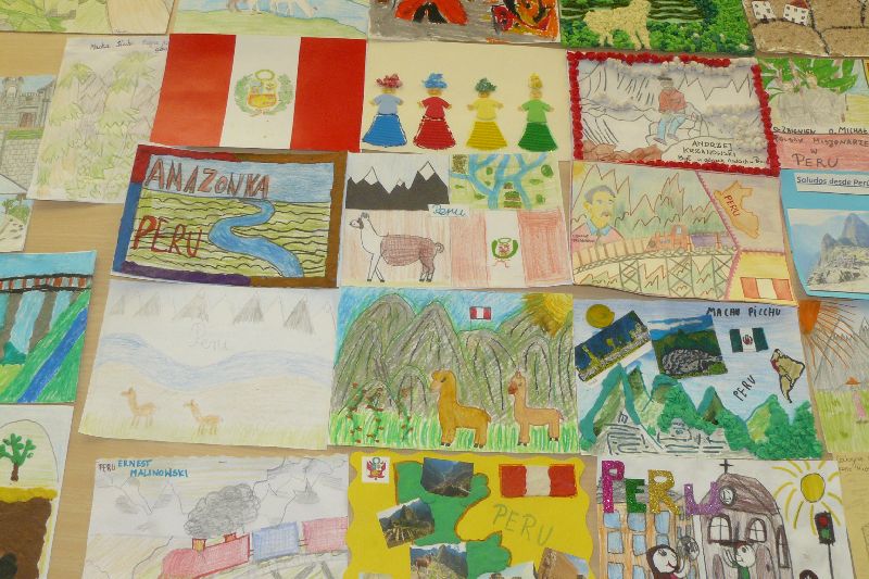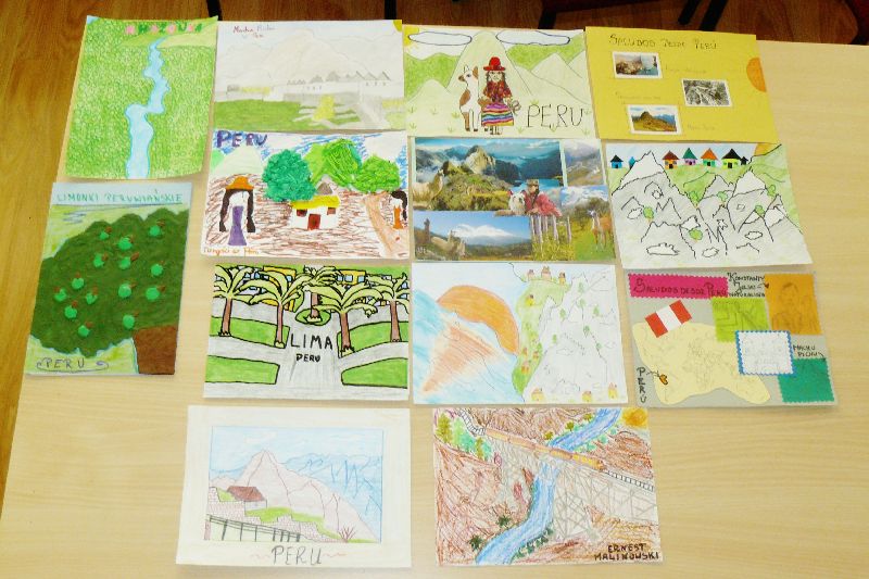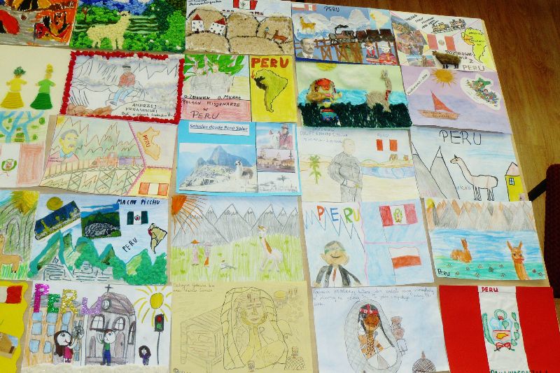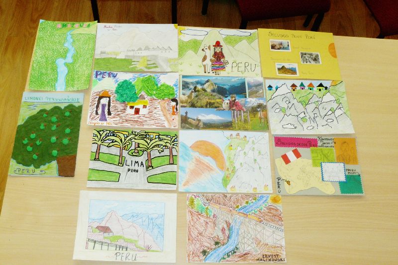 Wraz z końcem stycznia uczniowie naszej szkoły przekazali do Urzędu Marszałkowskiego w Poznaniu, za pośrednictwem Biblioteki Pedagogicznej w Wolsztynie, ponad 30 prac plastycznych w ramach konkursu zatytułowanego „Polacy w świecie znani z działalności misyjnej, technicznej, archeologicznej i przyrodniczej”. Jego celem było wzbudzenie zainteresowania wśród uczniów historią naszych rodaków w świecie oraz historią, geografią i kulturą kraju określonego w temacie. Tegoroczna rywalizacja przebiegała pod hasłem „Polacy w Peru”.