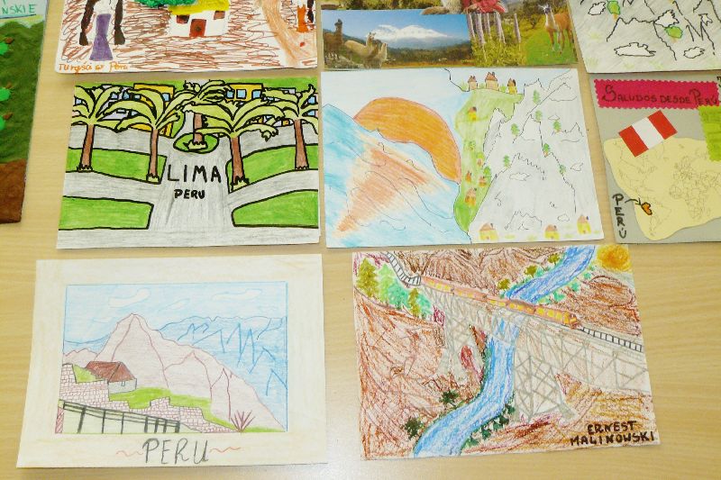 Uczniowie szkoły podstawowej mieli za zadanie zaprojektować pocztówkę, jaką chcieliby otrzymać z Peru. W ramach wewnątrzszkolnych eliminacji w klasach 1-3 wyróżniono następujące osoby: