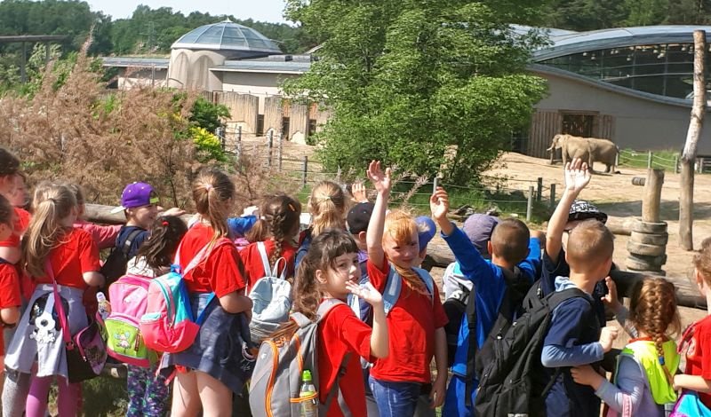W poniedziałek 14 maja 2018 r. klasy 1b i 2 a wybrały się na szkolną wycieczkę do Poznania. Z samego rana zawitaliśmy do Ogrodu Zoologicznego Nowe Zoo. Zaopatrzeni w bilety kolejką parkową po zoo podjechaliśmy pod pawilon słoniarni. Z tarasów widokowych podglądaliśmy śniadanie słoni o imionach: Ninio, Linda, Kinga i Kizi. W znakomity humor wprawiły nas baraszkujące w wodzie wydry europejskie. W czasie dalszej wędrówki obserwowaliśmy spacer niedźwiedzia brunatnego, drzemkę tygrysa syberyjskiego, bawiące się żyrafy i małpiatki oraz wiele innych zwierząt. W licznych wolierach podziwialiśmy niezwykłe ptaki.