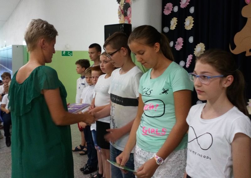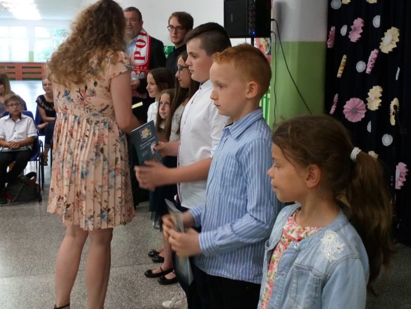 Po obejrzeniu krótkiego programu artystycznego uczniowie otrzymali nagrody książkowe i dyplomy.