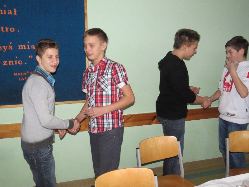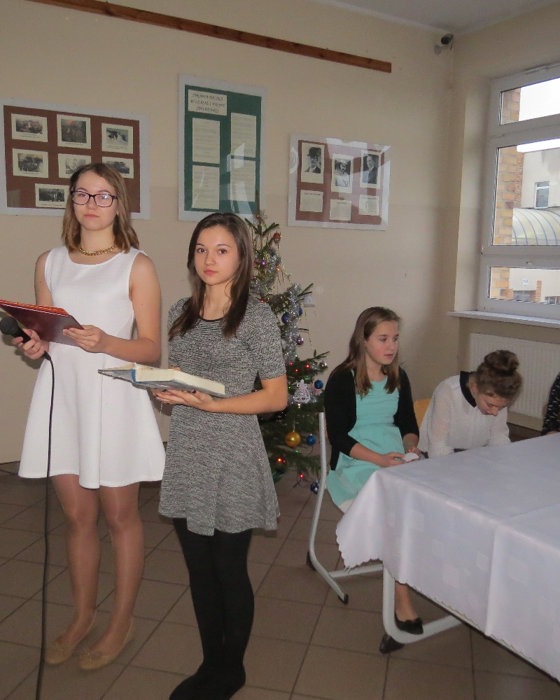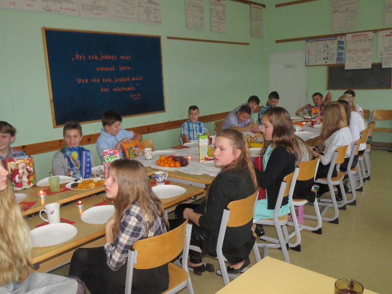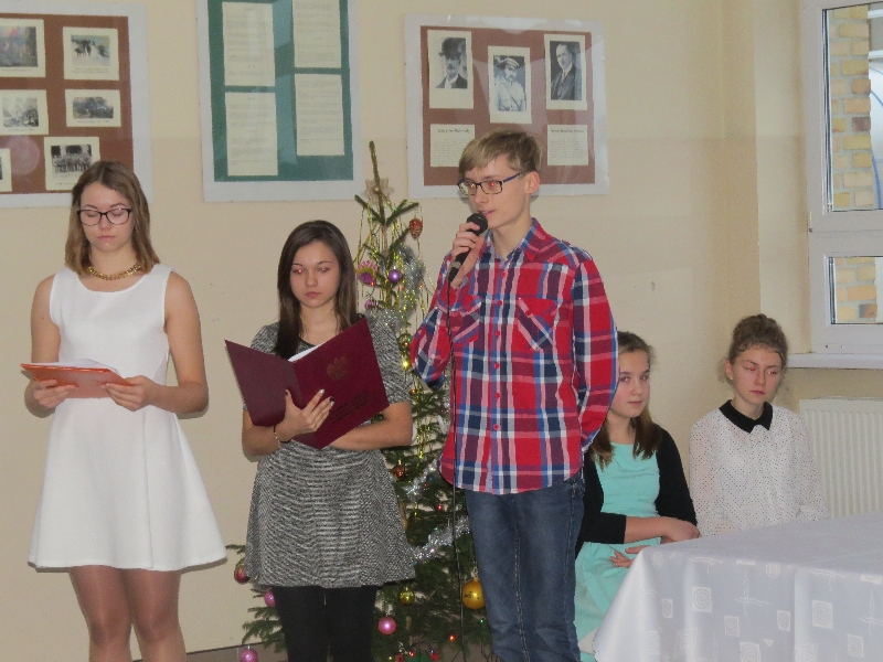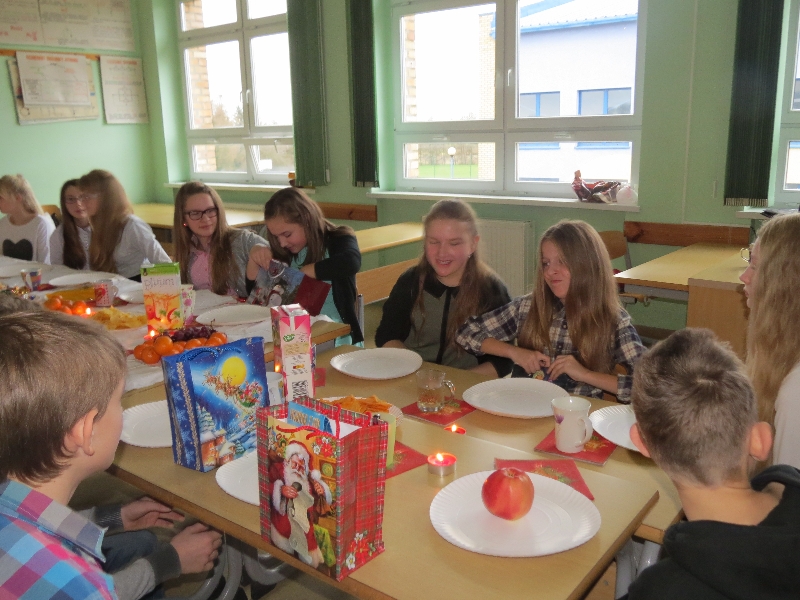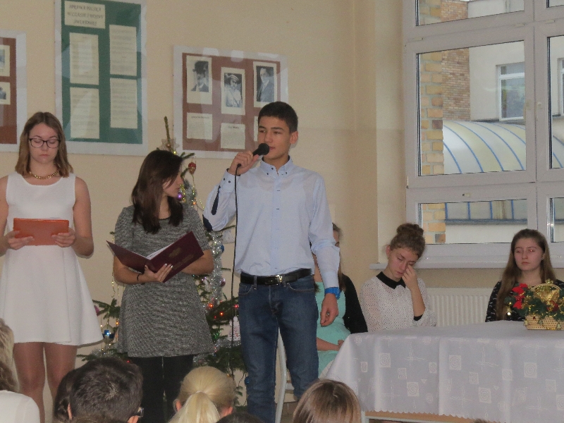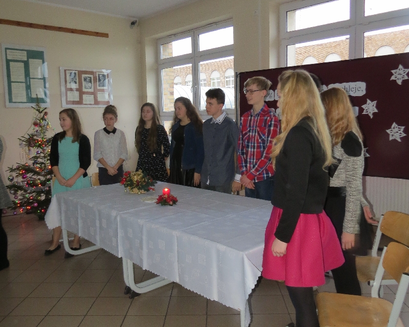 Rozpoznajemy je, kultywujemy, ale nie zawsze znamy ich rodowód oraz symbolikę. Polskie zwyczaje bożonarodzeniowe, bo o nich mowa, były motywem przewodnim piątkowego przedpołudnia w Zespole Szkół im. Polskich Noblistów w Wielichowie. Uczniowie gimnazjum wysłuchali wielu interesujących informacji, uczestnicząc w prezentacji przygotowanej przez uczniów klasy IIb pod okiem A.Kalemby. Rozmawiali też o nich ze swoimi wychowawcami, siedząc przy wspólnym klasowym-wigilijnym stole. Była okazja do przełamania się opłatkiem, składania życzeń, wspólnego śpiewania kolęd, słuchania piosenek o tematyce świątecznej, a także obdarowania się drobnymi upominkami.
