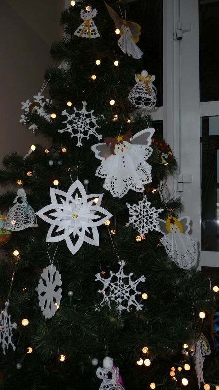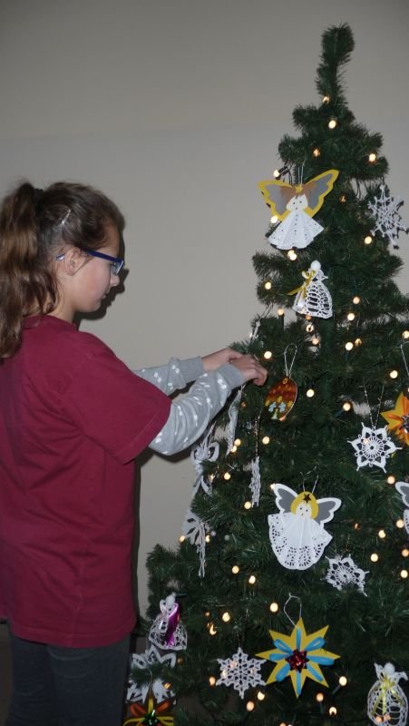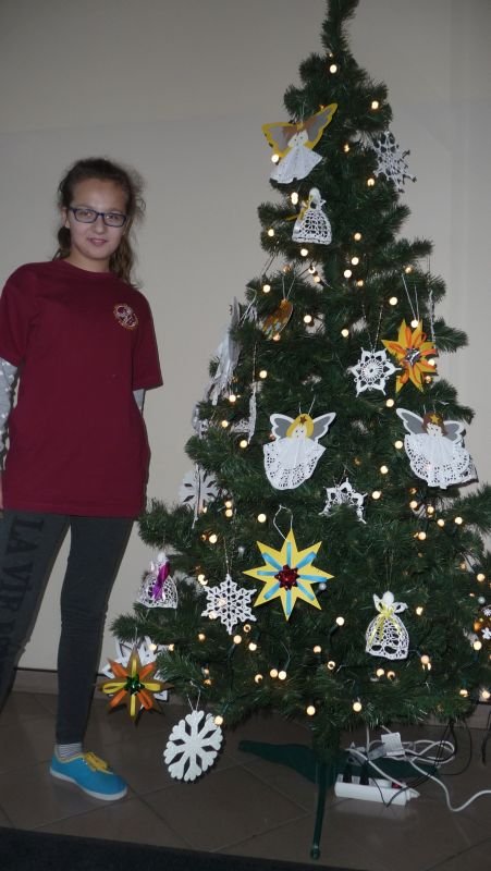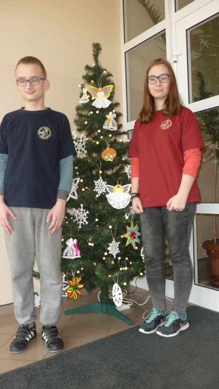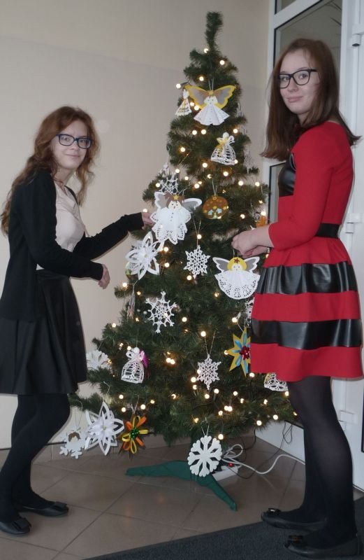 Do świąt Bożego Narodzenia przygotowują się wszyscy, dorośli jak i dzieci. Uczniowie naszego gimnazjum zatroszczyli się również o naszą szkolną choinkę..Julka Pacyna z klasy II wraz z koleżankami: Martyną Primke i Olą Michalak z klasy I oraz kolegą - Jakubem Wolniczakiem  poświęcili swój wolny czas i wykonali piękne ozdoby choinkowe, które cieszą oko każdego gościa naszej szkoły. Dzięki ich pracy, choinka wygląda pięknie i bogato. Uczniom gratulujemy pomysłów i ochoty do pracy.