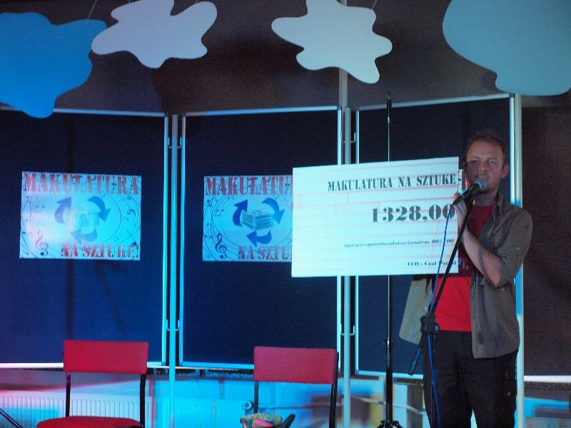 Kilka miesięcy temu, za sprawą Damiana Popiołkiewicza – nauczyciela muzyki, w szkole zrodził się pomysł na to jak czerpać wymierne korzyści z selektywnej zbiórki odpadów.  Zgodnie z założeniami projektu pod nazwą „Makulatura na sztukę”, uczniowie wszystkich etapów edukacji zbierali makulaturę, która później odwożona była do punktu skupu. W momencie zainicjowania akcji, do życia powołany został Eco-Cool Patrol składający się z uczniów klas II i III gimnazjum, którzy każdego tygodnia zbierali w poszczególnych klasach makulaturę oraz ważyli ją na wadze przemysłowej. Zgodnie z założeniami akcji, uzyskane ze sprzedaży pieniądze przeznaczone miały zostać na organizację koncertów muzycznych z udziałem profesjonalnych muzyków, dzięki czemu uczniowie mieliby szansę obcować z kulturą muzyczną bez zobowiązań finansowych.  Do tej pory udało się trzykrotnie zapełnić makulaturą  spory kontener, dzięki czemu uzyskaliśmy kwotę 1328 zł.
