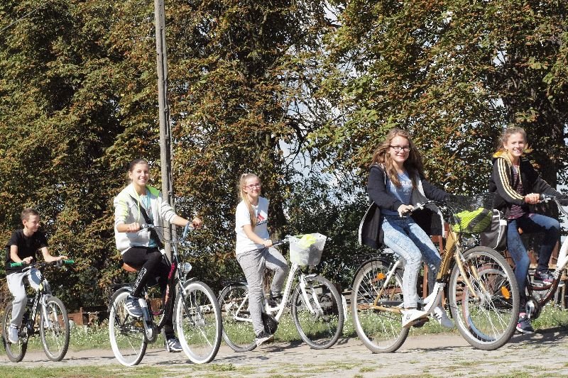 W gimnazjum nie brakuje uczniów lubiących aktywny wypoczynek i wybierających niekonwencjonalne sposoby na spędzenie wolnego dnia. Świadczy o tym frekwencja na sobotnim rajdzie rowerowym, który prowadził do trochę zapomnianego już miejsca - dawnej stacji kolejowej w Plastowie niedaleko Kamieńca. Tam właśnie dotarła grupa rowerzystów, by swoje dwa koła zamienić na nieco inne - toczące się po torach kolejowych. Jazda drezynami - zarówno tymi napędzanymi siłą ramion, jak i tymi ciągniętymi przez Fiata 126p - stała się źródłem zadowolenia i niezapomnianych wrażeń na łonie natury. Wrażenia te zaś należały do naprawdę przyjemnych, bo i aura była naprawdę sprzyjająca. Zmęczeni trasą uczestnicy rajdu mieli oczywiście szansę zregenerować siły, siadając przy ognisku i zajadając własnoręcznie pieczone kiełbaski.