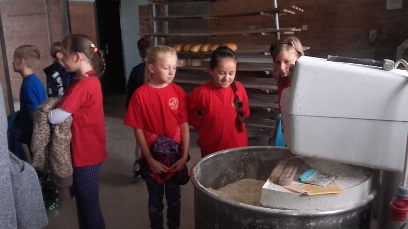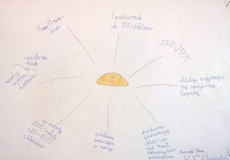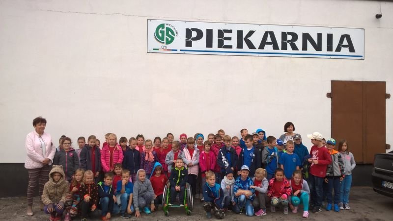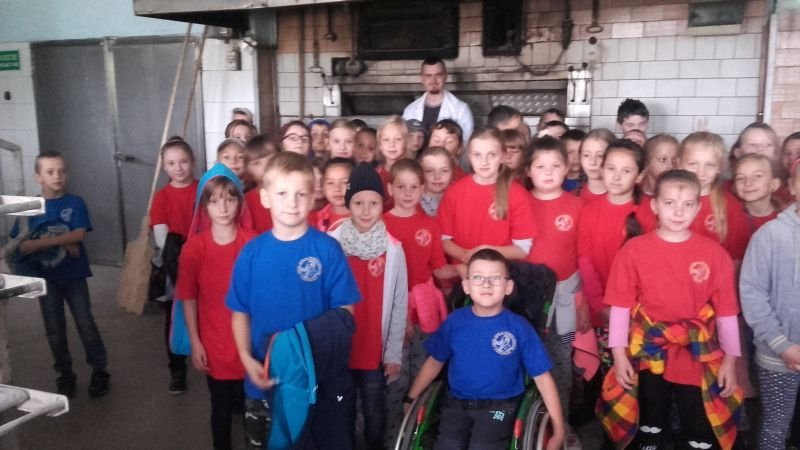 Uczniowie klas trzecich szkoły podstawowej wybrali się na wycieczkę do piekarni znajdującej się na terenie naszego miasteczka  w celu podsumowania cyklu lekcji związanych z kolejnymi etapami powstawania chleba.  Podczas spotkania z piekarzem – absolwentem naszej szkoły- mogli zobaczyć z bliska urządzenia potrzebne do produkcji chleba i usłyszeć wiele ciekawych informacji na temat pracy piekarza. Największe wrażenie wywarł na uczniach piec, w którym wypieka się pieczywo.  Uczniowie sami zadawali pytania związane z obsługą tego urządzenia. Po powrocie do szkoły zdobyte wiadomości zostały  uporządkowane i zapisane na mapach myśli oraz zobrazowane  podczas zajęć plastycznych.