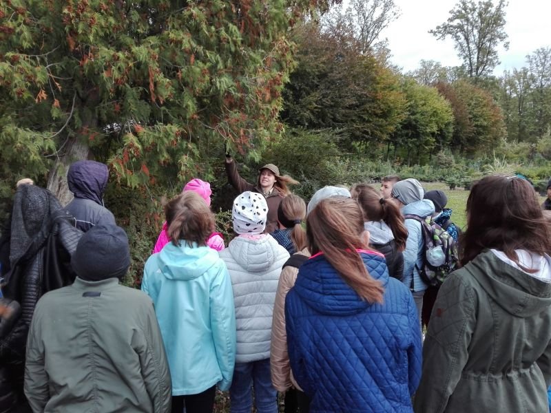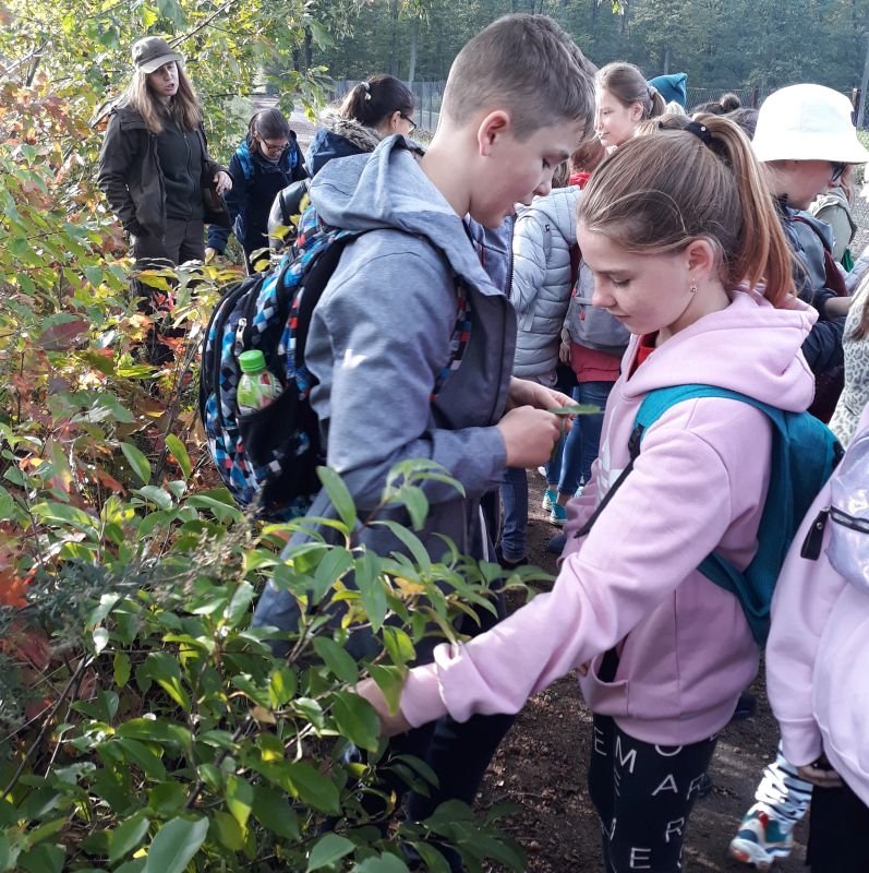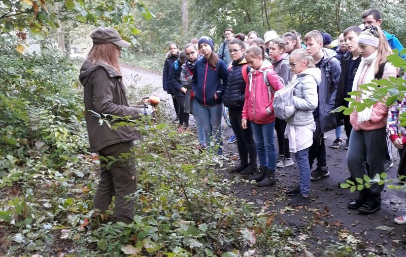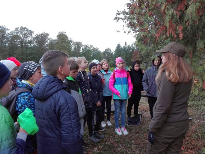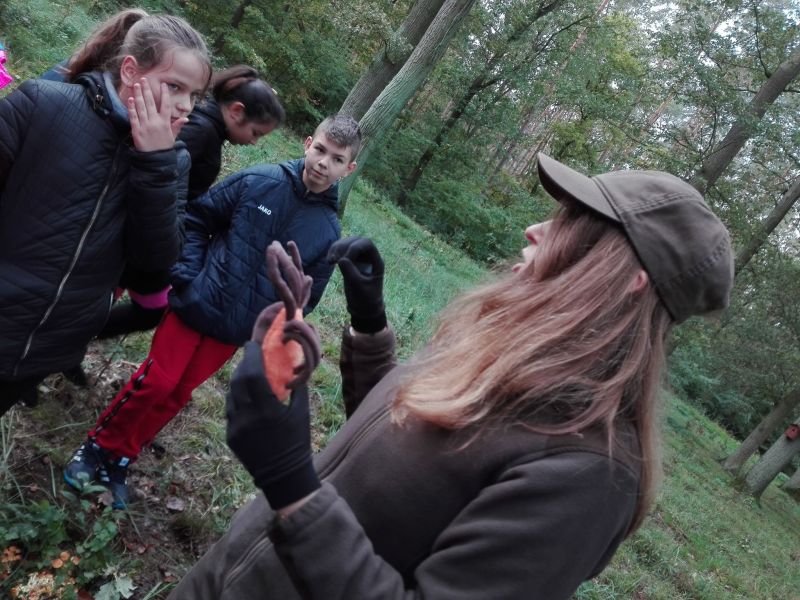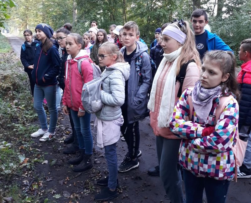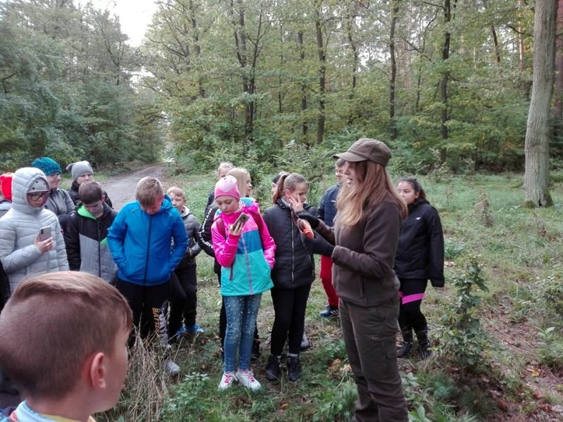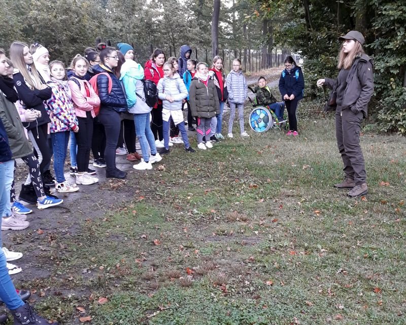 Uczniowie klas szóstych wykorzystali piękną jesienną pogodę na zielone lekcje w Gospodarstwie Szkółkarskim w lesie w Racocie. Po przybyciu na miejsce spotkali się z panią leśnik Magdaleną Malcherek z Nadleśnictwa Kościan, która ciekawie opowiadała im o tym, jak powstaje las, co człowiek z niego czerpie i jak go odbudowuje. Mówiła uczniom o zwyczajach oraz potrzebach leśnych zwierząt oraz o zagrożeniach, które mogą nas ze strony zwierząt spotkać i jak sobie z nimi radzić. Uczestnicy rozpoznawali najbardziej pospolite drzewa i rośliny w lesie.