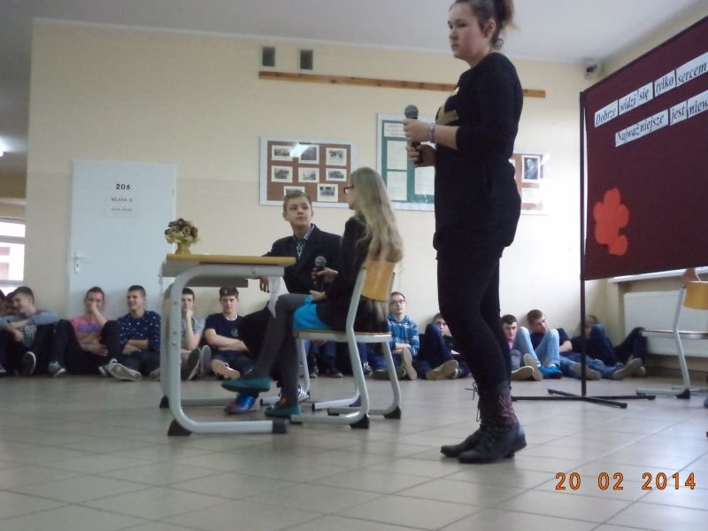 20 lutego uczniowie klas Ia i Id przedstawili krótkie scenki, które w sposób humorystyczny, ale prawdziwy, ukazywały rozterki miłosne. Z tej okazji, tydzień po walentynkach, w naszej szkole zapanował iście romantyczny nastrój.