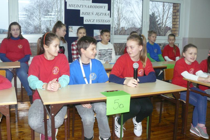 W naszej szkole  obchody tego święta  przybrały formę turnieju, a jego celem było przede wszystkim wskazanie, że warto znać język polski oraz pielęgnować poprawność naszej mowy. Każdą z klas 4-6 reprezentował trzyosobowy zespół , który  musiał się wykazać zrozumieniem różnorodnych zawiłości językowych, walczył  z bykami (ortograficznymi rzecz jasna) oraz zmagał się  z frazeologią. Rywalizację zakończyło otrzymanie przez zwycięskie  klasy  Tytułu Mistrza Języka Ojczystego. Tym sukcesem mogą się pochwalić klasy:4b, 5b i 6a