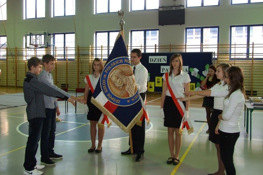 Tegoroczny Dzień Patrona w gimnazjum połączony został z Pasowaniem klas pierwszych. W trakcie uroczystego apelu pierwszoklasiści złożyli ślubowanie na sztandar szkoły, a także odebrali nagrody w konkursach, które pomogły im poszerzyć wiedzę na temat polskich noblistów. Najwyższe miejsca zajęli: M.Szkuta z kl. Ib (Życie i twórczość M.Skłodowskiej-Curie), A.Dudziak z kl. Ic (Życie i twórczość H.Sienkiewicza), A.Janeda z kl. Ia (Życie i twórczość W.S.Reymonta oraz J.Ochmański z kl. Ic (Życie i działalność Lecha Wałęsy). Wiersze W.Szymborskiej oraz z. Miłosza najpiękniej recytowały-zdaniem jurorów -R.Świtalska i J.Kaczmarek. Uwaga gimnazjalistów szczególnie skupiona była w tym roku na postaciach M.Skłodowskiej-Curie, która to dokładnie 100 lat temu odebrała jedną z dwóch swoich Nagród Nobla oraz Cz.Miłoszu, którego stulecie urodzin stało się pretekstem do ogłoszenia roku 2011 rokiem jego pamięci. Sylwetki obu wspomnianych noblistów przybliżone zostały w trakcie uroczystości dzięki prezentacjom multimedialnym, przygotowanym przez uczniów klas II i III. Za najciekawsze z nich uznano prace Karoliny Marciniak z kl. IIb oraz Kingi Marciniak z kl. IIIa - one to właśnie nagrodzone zostały upominkami książkowymi. Obchody Dnia Patrona stały się ponadto okazją do wręczenia nagród laureatom konkursów przedmiotowych - także tym, którzy zakwalifikowali się do etapu rejonowego. Najwyższą liczbę punktów na etapie szkolnym uzyskali: I.Kurpisz z kl. IIc