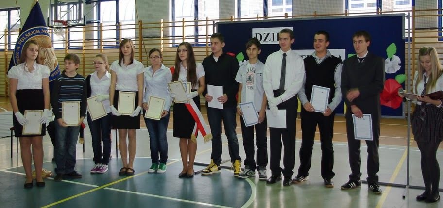 W trakcie uroczystej akademii w szkole podstawowej, nagrody odebrali zwycięzcy. Wśród nich znaleźli się: Wiktor Golczak z kl. IV (Konkurs wiedzy o L.Wałęsie i Cz.Miłoszu), Dominika Grześ z kl. Vb (Konkurs wiedzy o H.Sienkiewiczu i W.Szymborskiej) i Marta Dryka z kl. VIa (Konkurs wiedzy o M.Skłodowskiej-Curie i W.S. Reymoncie). Najlepszy opis wybranego noblisty przygotowała Natalia Skoracka z kl. VIc, najciekawszy list do noblisty napisała zaś Łucja Michalska z kl. Va. Najlepszymi recytatorami okazali się: Natalia Skoracka reprezentująca klasy VI, Mateusz Krupka z kl.VI oraz czwartoklasistka-Agata Frąckowiak. Najmłodsi rywalizowali na gruncie plastycznym. Laureatami zostali zaś: K.Stopa, M.Nowacka, A.Krawczyk, G.Szczepaniak, Z.Mikołajczyk i W.Wróbel z klasy O, W.Polak, M.Matuszczak, J.Smolarek oraz W.Sibila z kl. I, Z.Chałupniczak, K.Leśna, J.Węcławiak i W.Podgórska z kl. II, a także M.Walkowiak, P.Drzymała, Sz. Skrzypczak i A.Daktera z kl. III. W trakcie uroczystości nagrody odebrali ponadto laureaci szkolnych konkursów przedmiotowych, którzy zakwalifikowali się do etapu rejonowego. Są to: R.Krzyczyński (Konkurs przyrodniczy), M.Drgas, S.Smolarek, O.Skrzypek, G.Stachowiak, D.Borowczak i K.Weiss (Konkurs humanistyczny), D.Borowczak, R.Melerowicz i N.Skoracka (Konkurs matematyczny).