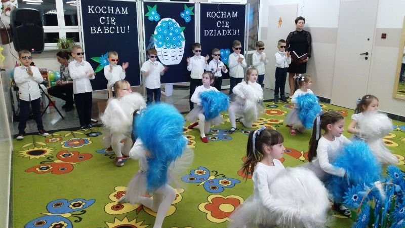 Przedszkolaki od samego rana z niecierpliwością wyczekiwały zaproszonych gości, nie mogąc się doczekać, kiedy zapukają do drzwi zerówki. Licznie przybyli goście mieli okazję podziwiać swoje wnuczęta w specjalnie dla nich przygotowanym programie artystycznym. Dzieciaki pod czujnym okiem wychowawczyni zaprezentowały wiersze, piosenki oraz tańce, które ćwiczyły na tą uroczystość. Wnuczęta wspaniale wystąpiły przed bliskimi i wręczyły im kwiatki. Następnie przedszkolaki zaprosiły babcie i dziadków na słodki poczęstunek przygotowany przez rodziców, aby w szczególny sposób okazać swoim bliskim szacunek i po raz kolejny podziękować za miłość, cierpliwość i zrozumienie. To była naprawdę wyjątkowa uroczystość, pełna uśmiechu, radości i dumy. Szczęśliwe i rozpromienione twarze babć i dziadków dały wyraz tego, jak ważne są takie spotkania i chwile spędzone wspólnie z wnukami.
