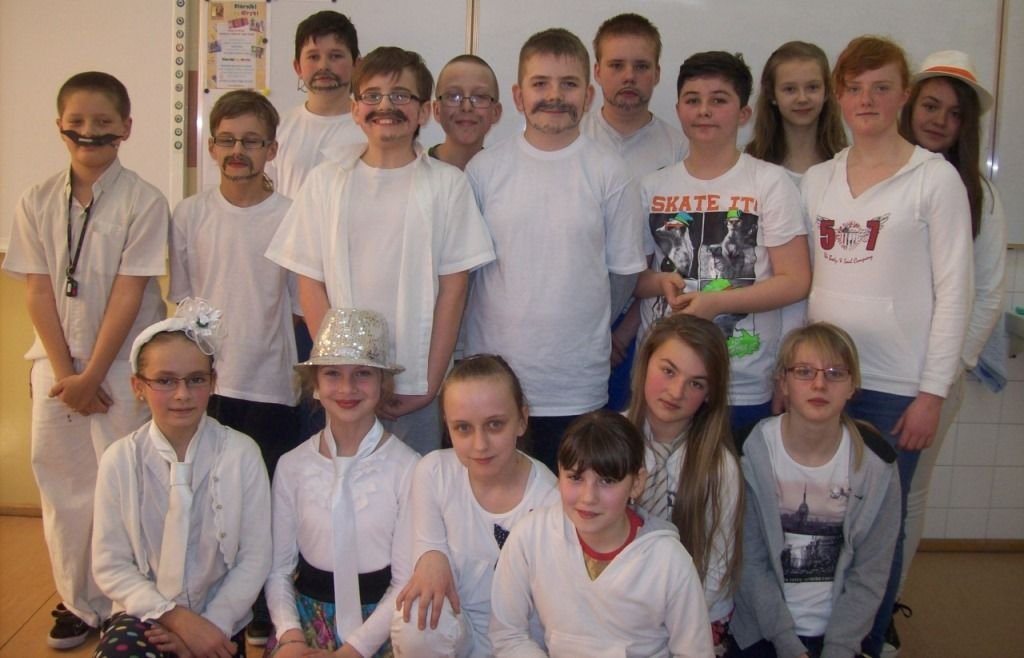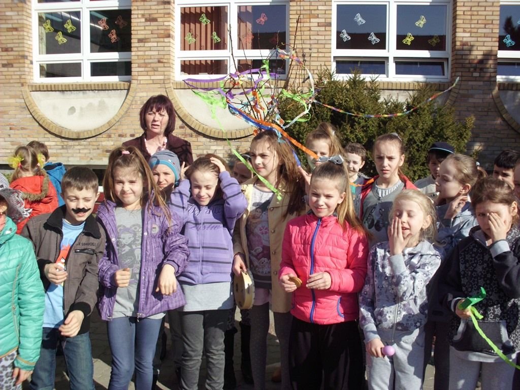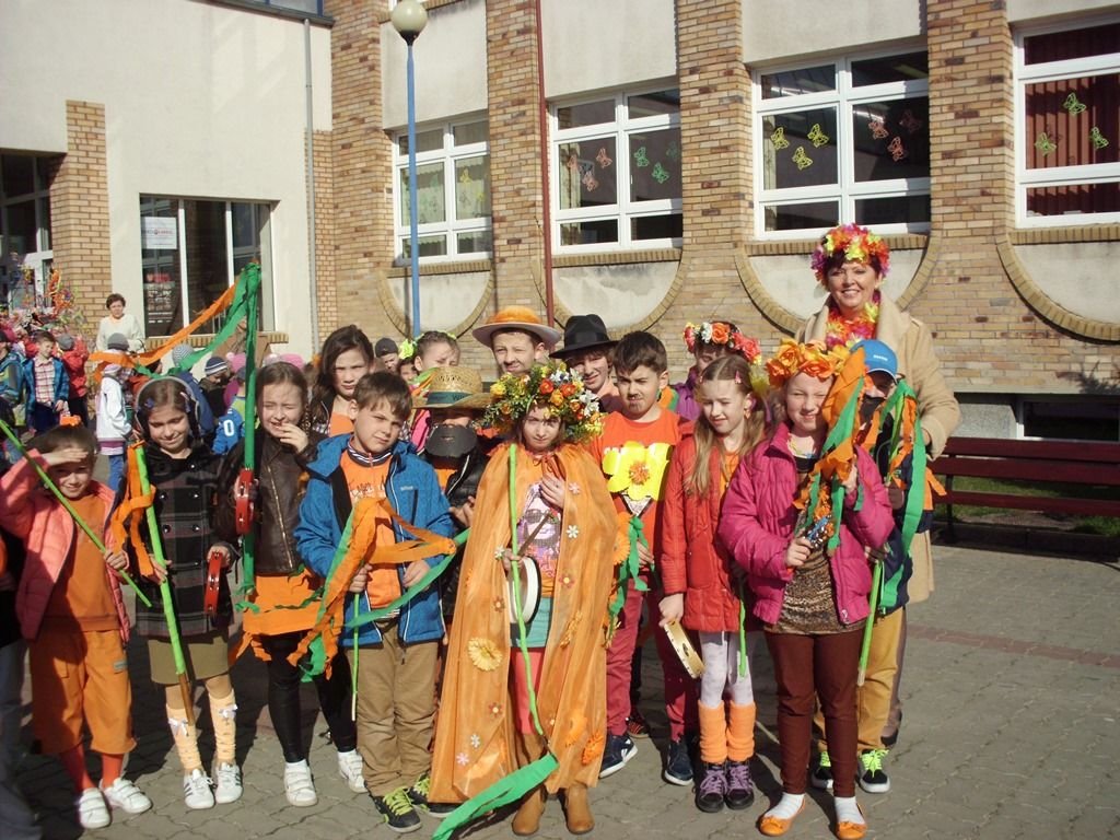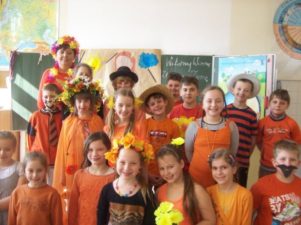 Wiosna to szczególna pora roku. Zachwyca niemal wszystkich swym urokiem i prawdopodobnie dlatego tradycja każe właściwie ją powitać. W tym roku uroczystość w szkole podstawowej przybrała następujący charakter. Uczniowie klas 3-6, a raczej ich przedstawiciele w Samorządzie Uczniowskim dokonali losowania koloru i typu zarostu. Każda klasa zamiast mundurka ubrała odzież we właściwej barwie np. 4a- czerwoną, 5a- turkusową, 4b- niebieską, itd. Oprócz tego chłopcy malowali, przyklejali bądź dorysowywali sobie zabawny zarost. W szkole zrobiło się bardzo kolorowo i zarazem śmiesznie. Zresztą wystarczy spojrzeć na zdjęcia. Natomiast uczniowie młodszych klas w różnobarwnych strojach powitali wiosnę podczas przemarszu wokół szkoły, wykrzykując przy tym radosne hasła wyrażające euforię z faktu, iż nadeszła wreszcie długo oczekiwana zielona pora roku.