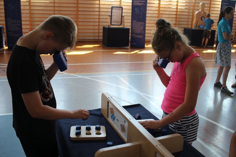 Wirujące krzesełko, najszybsza zjeżdżalnia, kula plazmowa, oszukaj swój słuch, trójwymiarowa układanka – ludzkie ciało, silny jak serce to tylko niektóre z eksponatów, jakie mogli dziś zobaczyć i wypróbować wszyscy, którzy przybyli do sali gimnastycznej w Wielichowie. Tam bowiem w poniedziałek i we wtorek można uczestniczyć w objazdowej, interaktywnej wystawie „Eksperymentuj”, która przyjechała z Centrum Nauki Kopernik w Warszawie. Przeznaczona jest ona zarówno dla dzieci, młodzieży, jak i dorosłych. Wystawie towarzyszy troje animatorów, którzy objaśniają zwiedzającym działanie eksponatów i opowiadają o zjawiskach naukowych.