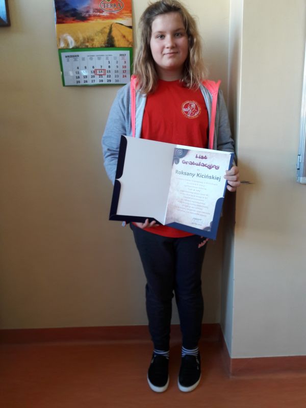 Uczennica z Wielichowa znalazła się w gronie 15 wyróżnionych. Zważywszy na to, iż w na konkurs nadesłano 130 listów, uznać należy to za jej wielki sukces. Do domu wróciła ona z listem gratulacyjnym oraz plecakiem, który z pewnością służył będzie jej w szkole.