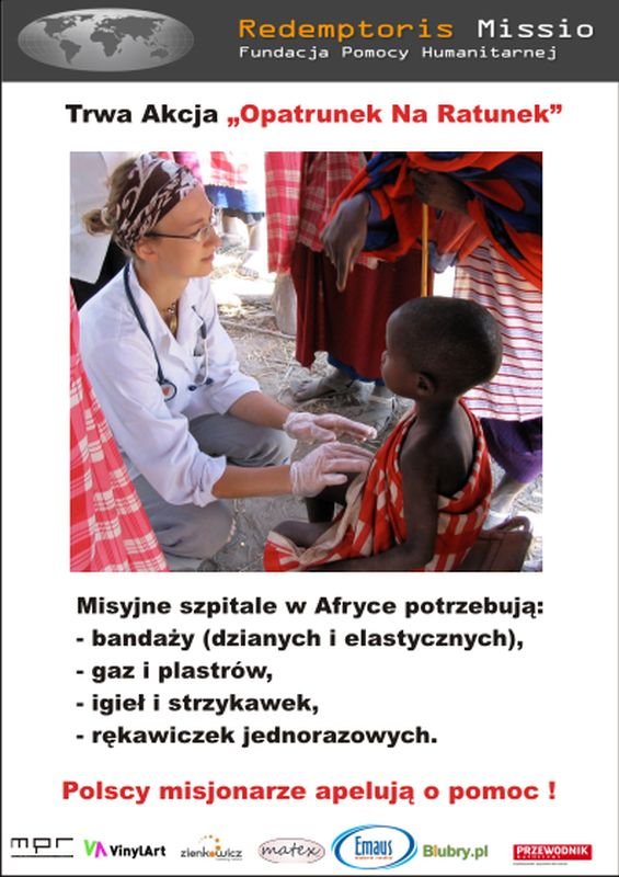 W naszej szkole rusza kolejna, znana Wam już akcja pomocy „Opatrunek na ratunek” ! Będzie trwała do końca października 2017r. Zbieramy wszelkie materiały opatrunkowe, które mogą przydać się lekarzom wolontariuszom w Afryce! Może uda nam się pobić wynik z roku 2015. Przypomnę Wam: zebraliśmy wtedy 4934 materiały opatrunkowe! Zachęcam do otwarcia swego serca na potrzeby naszych braci w Afryce! Bogatym nie jest ten, kto posiada, ale ten, kto „rozdaje”, kto zdolny jest dawać. Św. Jan Paweł II