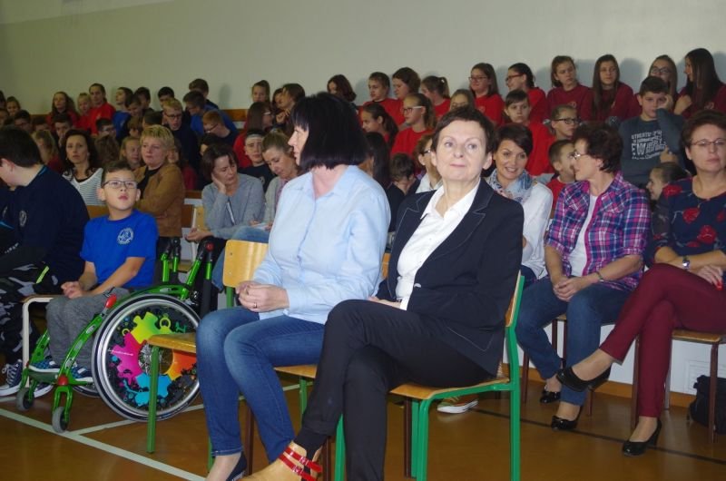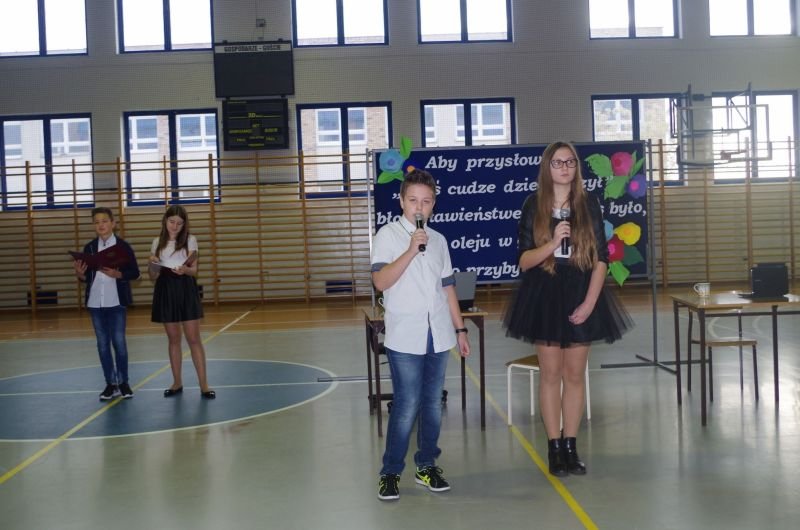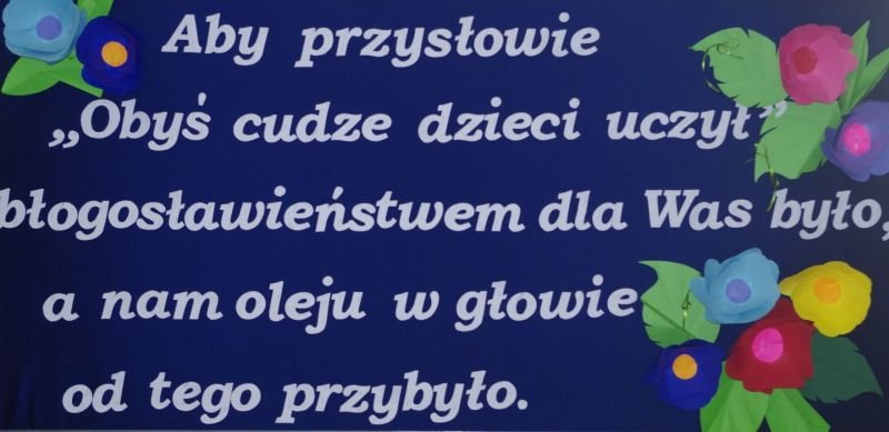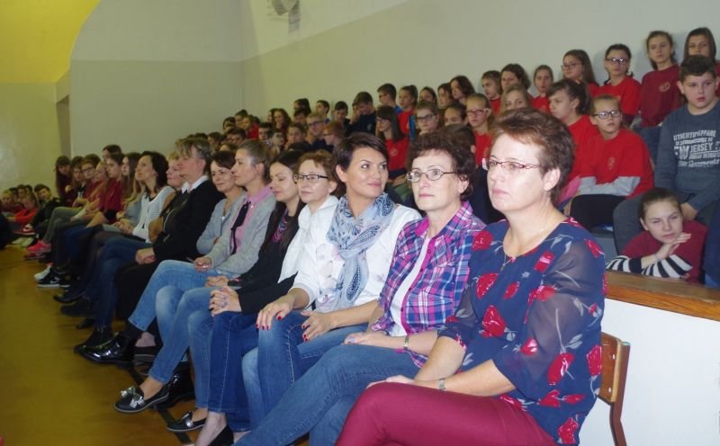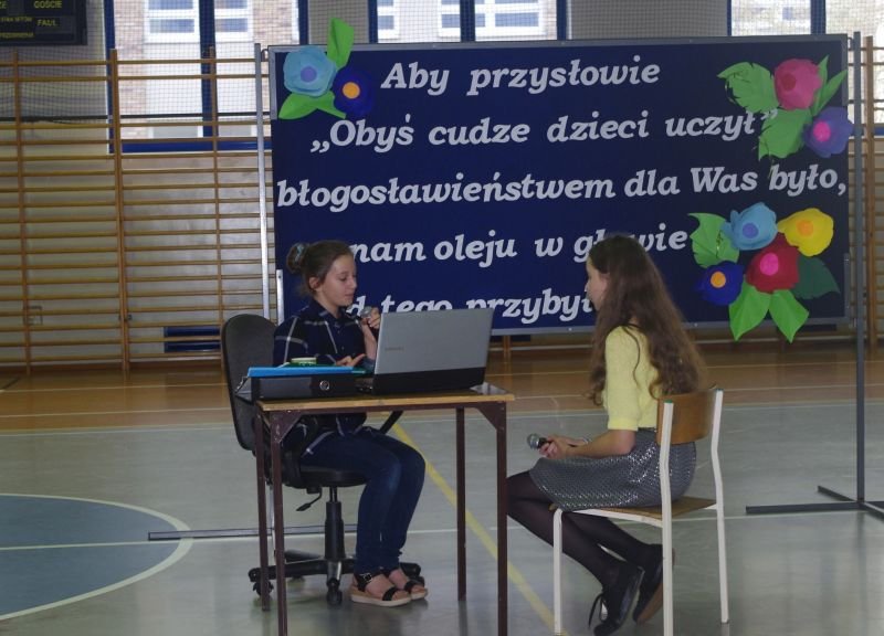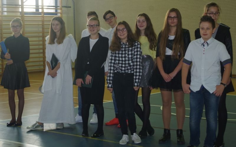 W tym roku akademię dla nauczycieli przygotowali, pod kierunkiem wychowawców, uczniowie klas siódmych. Oprócz tradycyjnych życzeń zaprezentowali zebranym żartobliwą scenkę przyjęcia do pracy nowego nauczyciela, a także różne typy pedagogów: anioła, luzaka, sceptyka, aktywistę oraz służbistę.