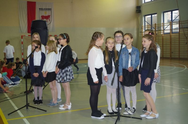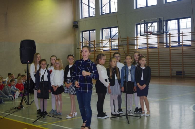 Akademię uświetniły piosenki w wykonaniu szkolnego chórku prowadzonego przez pana Damiana Popiołkiewicza.