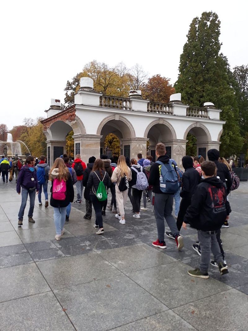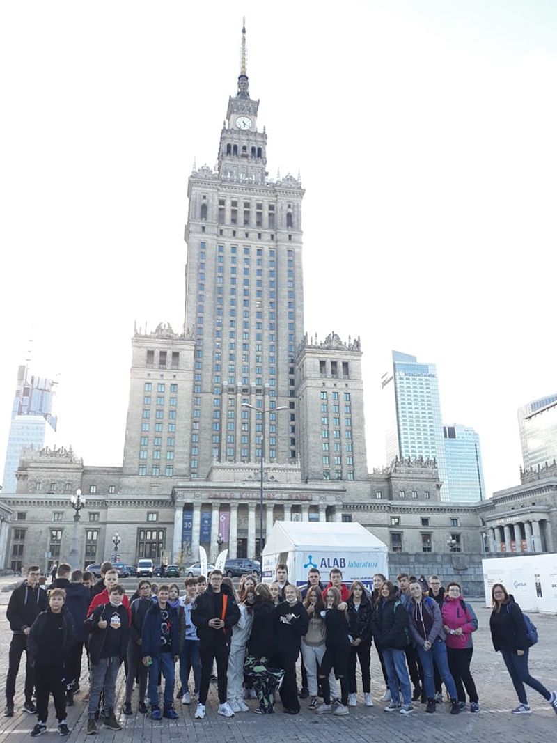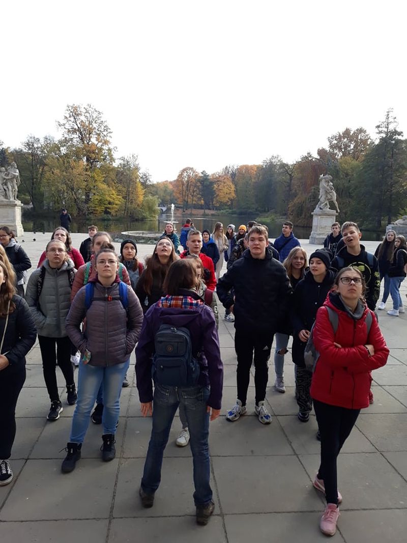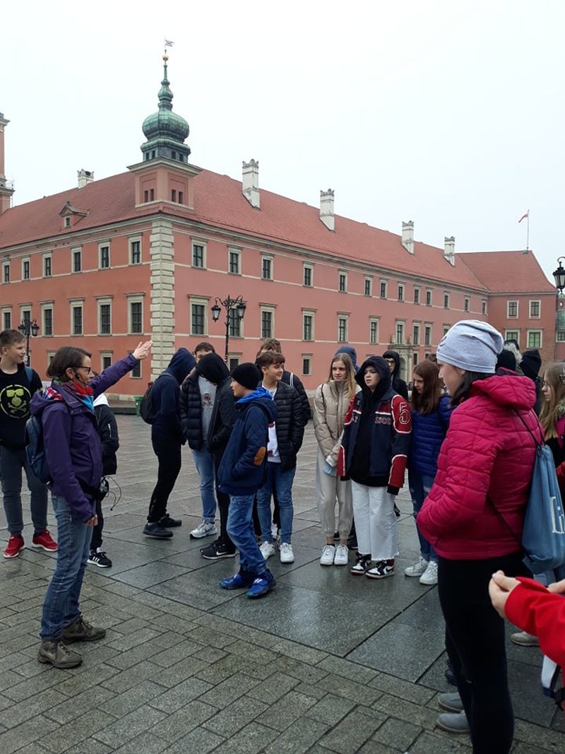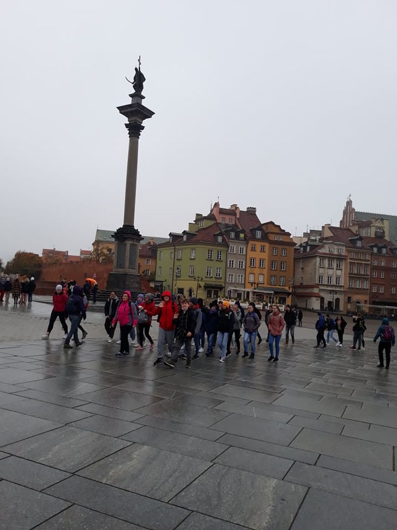 Klasy 8a, 8b i 8c spędzili 3 dni na wycieczce w Warszawie. W poniedziałek 18 października odwiedzili muzeum motoryzacji "Skarb Narodów", Stadion Narodowy, Muzeum Powstania Warszawskiego oraz Pałac Kultury i Nauki. Drugi dzień wycieczki, czyli wtorek był poświęcony na zwiedzanie Warszawy z przewodnikiem. Pani przewodnik oprowadziła uczestników wycieczki po starym mieście, pokazała Kolumnę Zygmunta, Zamek Królewski, Katedrę, mury obronne oraz Stary Rynek z pomnikiem Syrenki. Uczniowie z Przewodnikiem odwiedzili Pomnik Nieznanego Żołnierza, Park Saski, Cmentarz na Powązkach oraz Łazienki Królewskie. Po krótkiej przerwie młodzież zwiedziła Muzeum Fryderyka Chopina oraz Muzeum Świat Iluzji. Ostatniego dnia wycieczki uczniowie odwiedzili Centrum Pieniądza NBP oraz Dom Fryderyka Chopina w Żelazowej Woli. Wieczorem młodzież zmęczona, ale zadowolona i w dobrym humorze wróciła do domu.