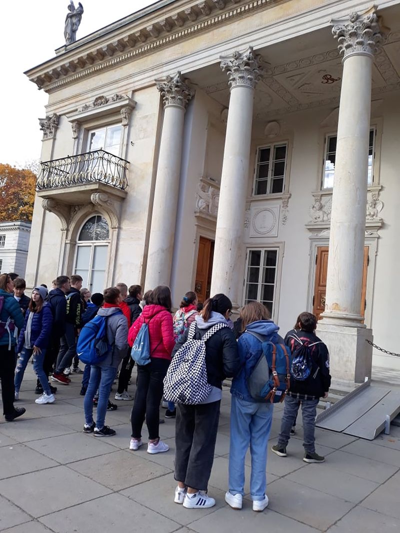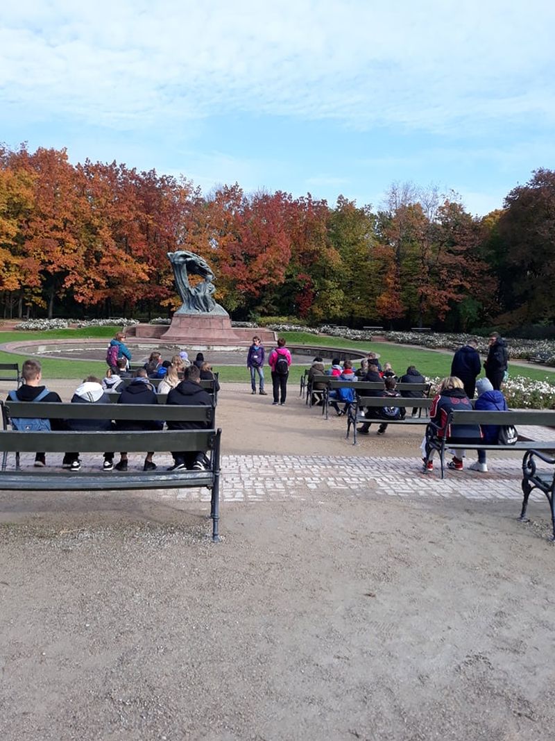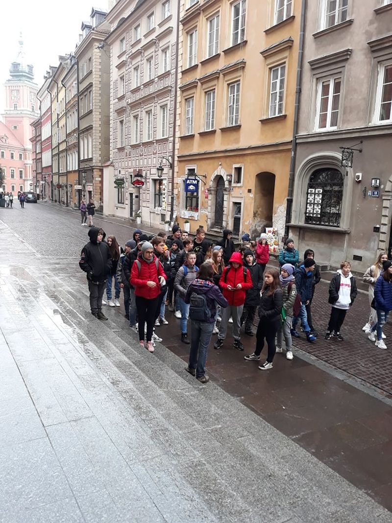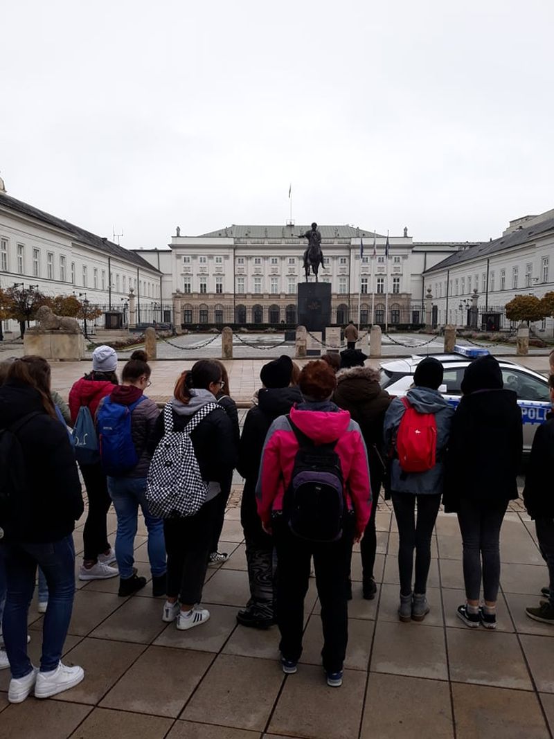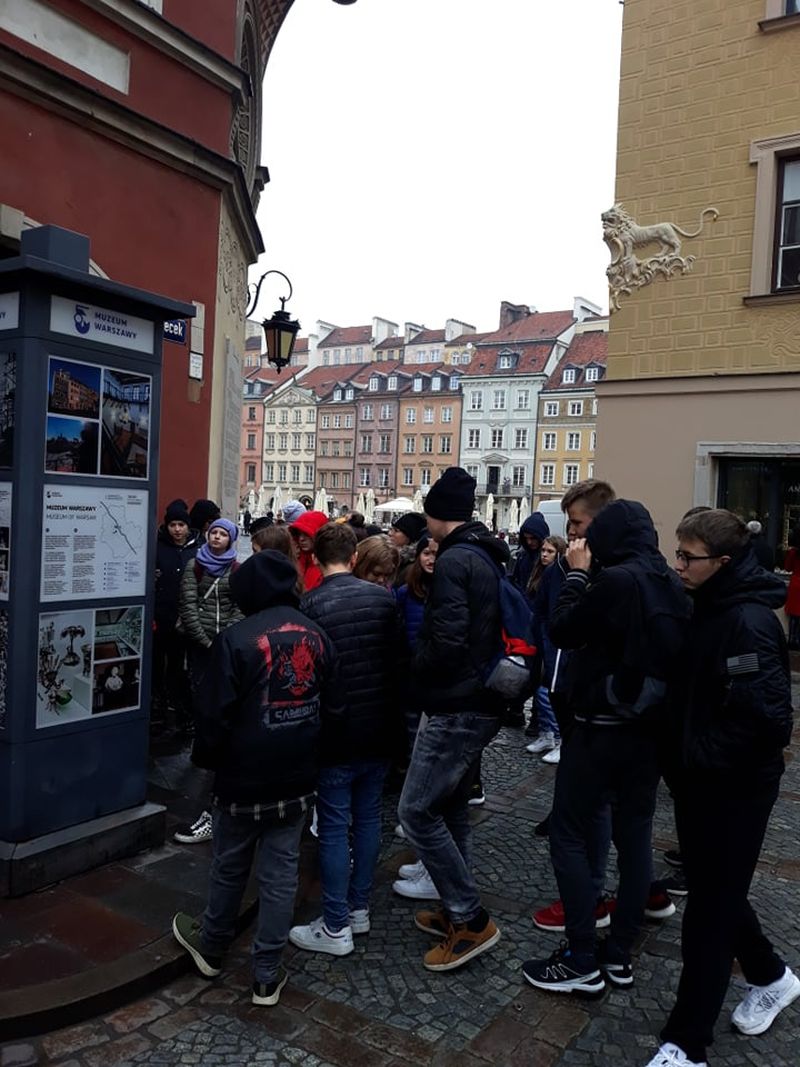 Klasy 8a, 8b i 8c spędzili 3 dni na wycieczce w Warszawie. W poniedziałek 18 października odwiedzili muzeum motoryzacji "Skarb Narodów", Stadion Narodowy, Muzeum Powstania Warszawskiego oraz Pałac Kultury i Nauki. Drugi dzień wycieczki, czyli wtorek był poświęcony na zwiedzanie Warszawy z przewodnikiem. Pani przewodnik oprowadziła uczestników wycieczki po starym mieście, pokazała Kolumnę Zygmunta, Zamek Królewski, Katedrę, mury obronne oraz Stary Rynek z pomnikiem Syrenki. Uczniowie z Przewodnikiem odwiedzili Pomnik Nieznanego Żołnierza, Park Saski, Cmentarz na Powązkach oraz Łazienki Królewskie. Po krótkiej przerwie młodzież zwiedziła Muzeum Fryderyka Chopina oraz Muzeum Świat Iluzji. Ostatniego dnia wycieczki uczniowie odwiedzili Centrum Pieniądza NBP oraz Dom Fryderyka Chopina w Żelazowej Woli. Wieczorem młodzież zmęczona, ale zadowolona i w dobrym humorze wróciła do domu.