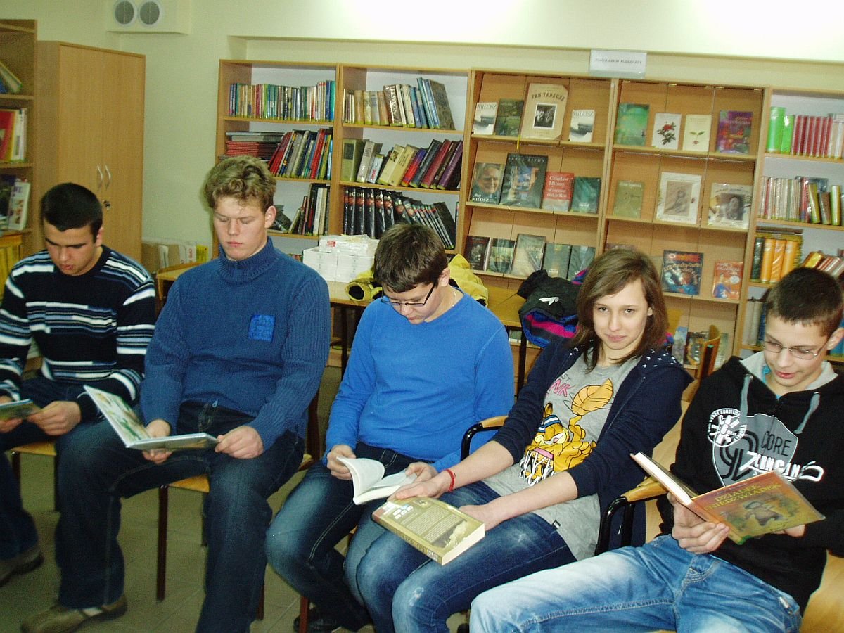 Maraton czytelniczy W poniedziałek w pierwszy dzień wakacji w bibliotece szkolnej odbył się II Maraton Czytelniczy. Do tegorocznego maratonu zostały wybrane książki polskich autorów. Prowadząca zajęcia czytała książkę pt. "Gruby". A. Minkowskiego. Uczestnicy spotkania mogli się również zapoznać z jej filmową adaptacją. Wszystkim bardzo spodobała się ta forma zajęć i z niecierpliwością czekają na kolejne spotkania.