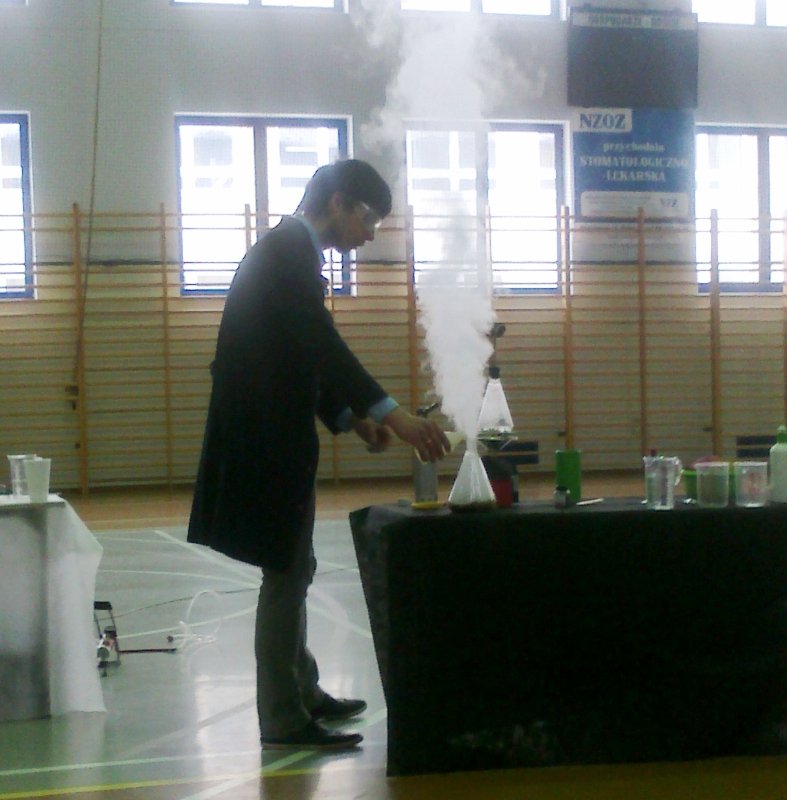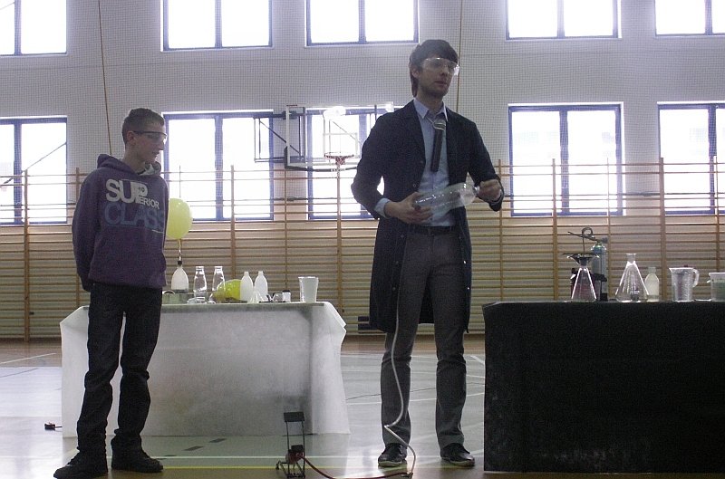 Nauka jest piękna... Feryjne eksperymenty w szkole Paradoksalnie, tegoroczne ferie uczniowie Zespołu Szkół im. Polskich Noblistów w Wielichowie rozpoczęli niezwykle naukowo, a do tego w nieco nietypowo. Na zaproszenie Bogumiły Andrzejewskiej oraz Magdaleny Glapiak-Skrzypczak, w szkole gościł Mateusz Stocki, który przygotował dla uczniów autorską prezentację pod tytułem: "OD WRZENIA DO GAZU". Osoby, które skorzystały z zaproszenia i znalazły tego dnia nieco wolnego czasu, obejrzały mnóstwo interesujących eksperymentów o intrygujących nazwach: odwrócona szklanka, hydrożel, balonowe wędkowanie, czarny smok, chemiczny gejzer, płonący stół, narodziny chmur, pasta do zębów dla słonia, czy działo N2.
